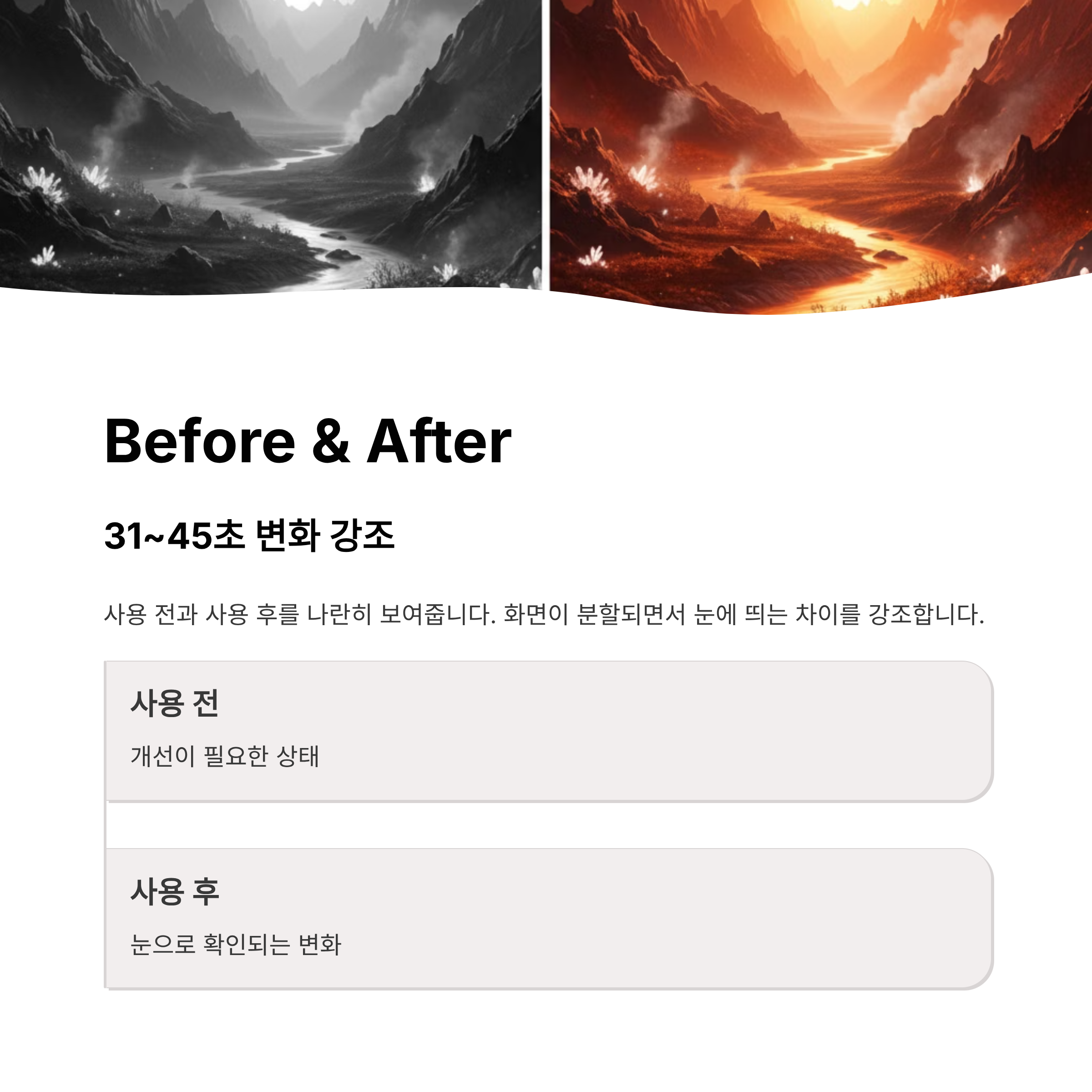 사용 전과 사용 후를 나란히 보여줍니다.