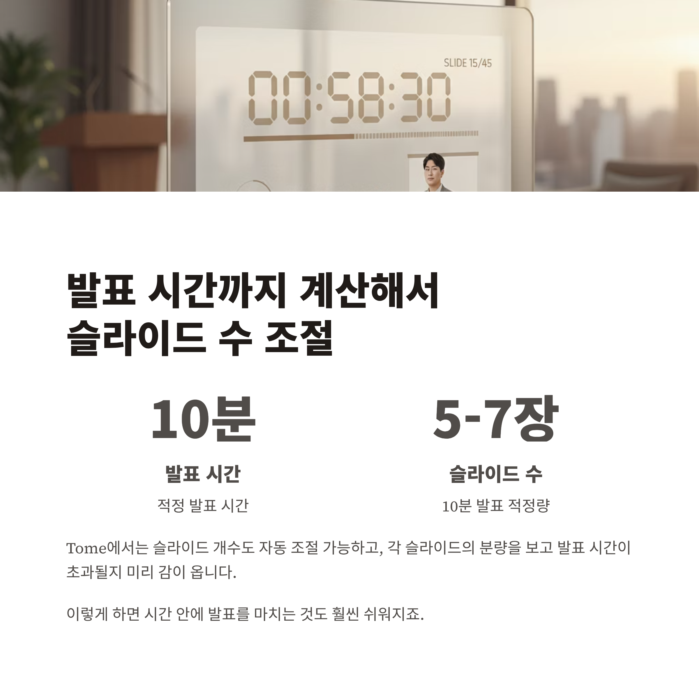 Tome에서는 슬라이드 개수도 자동 조절 가능하고,
