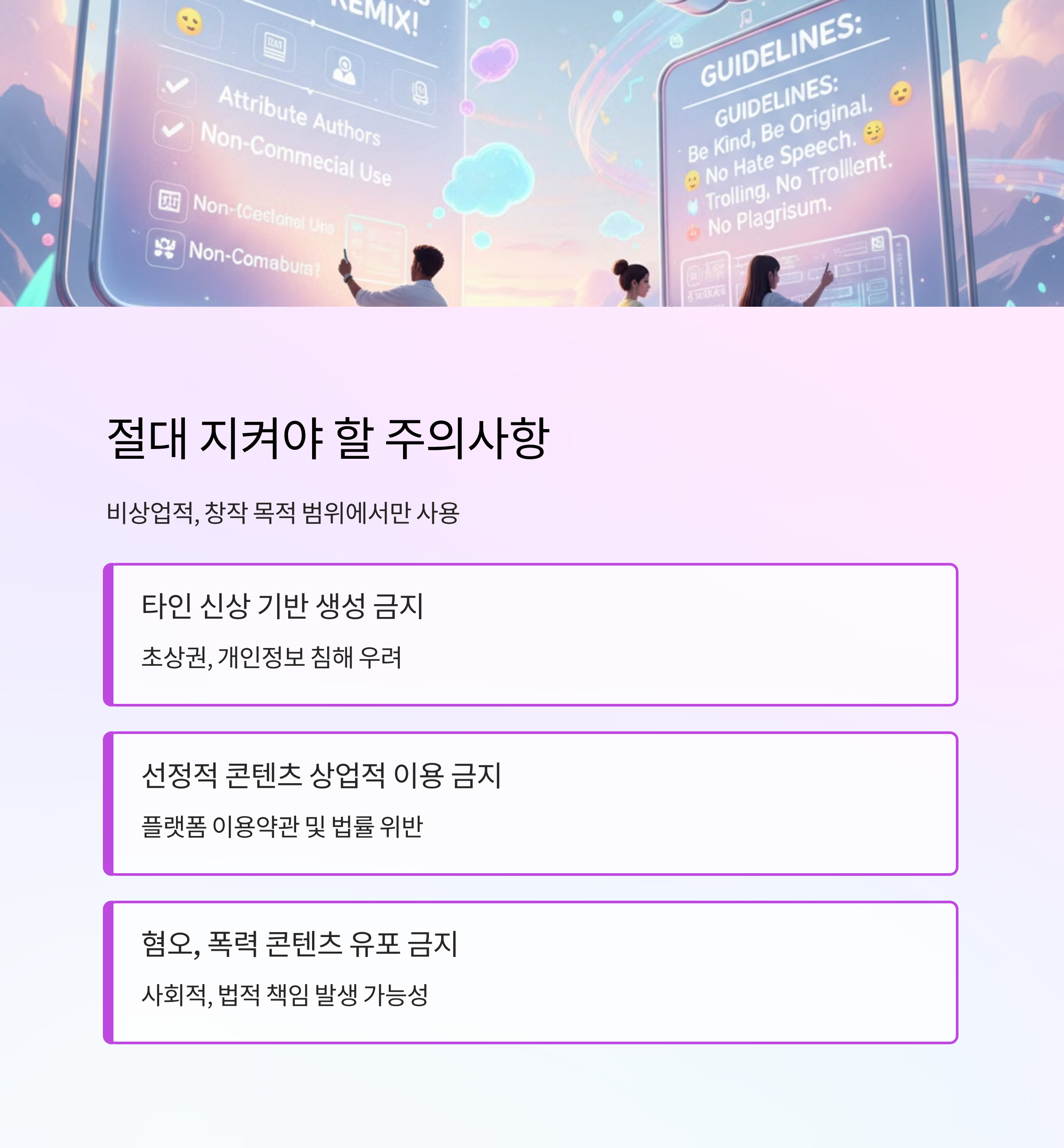 | 혐오, 폭력 콘텐츠 유포 | 사회적, 법적 책임 발생 가능성 |