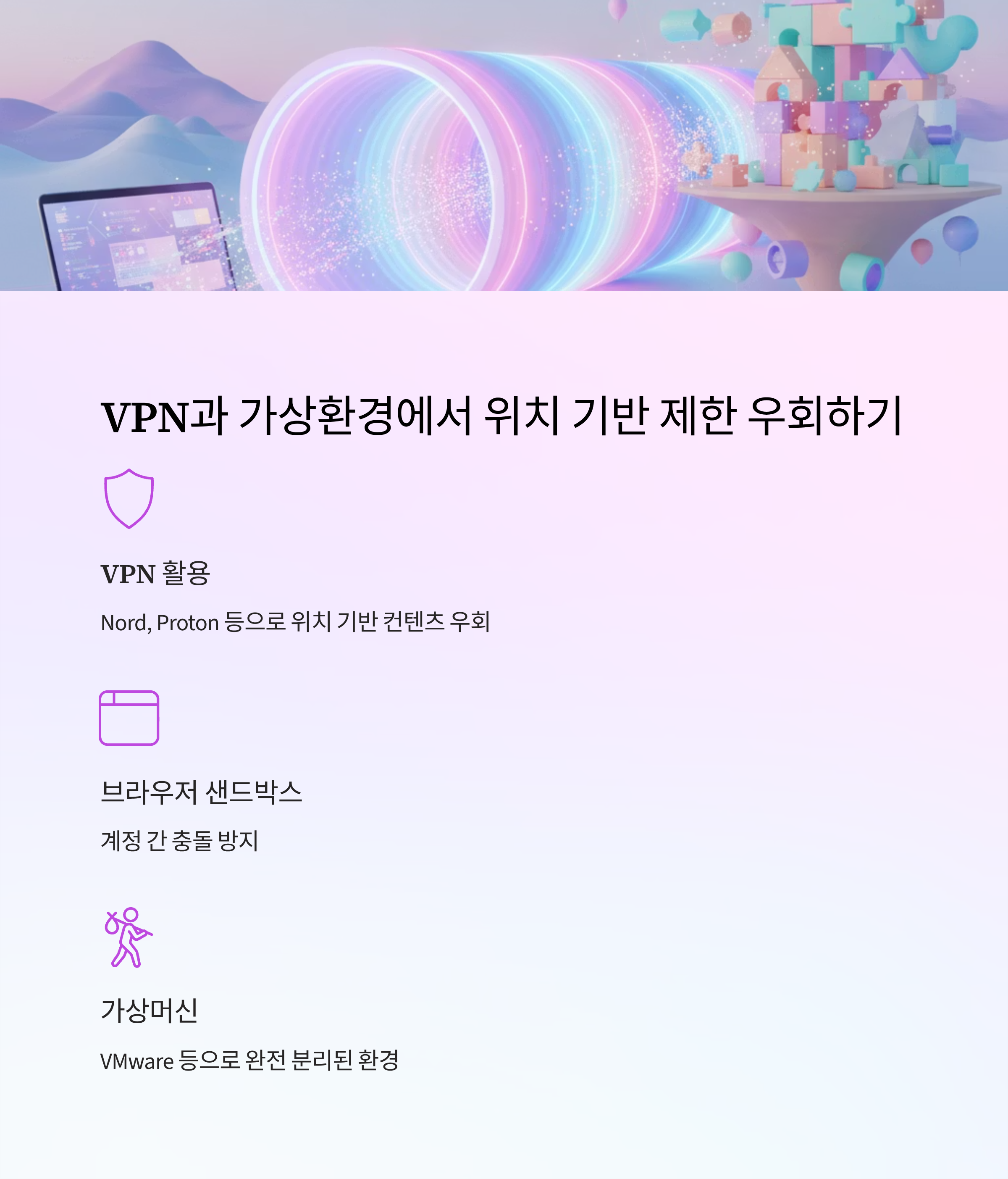 | VPN (Nord, Proton 등) | 위치 기반 컨텐츠 우회 |