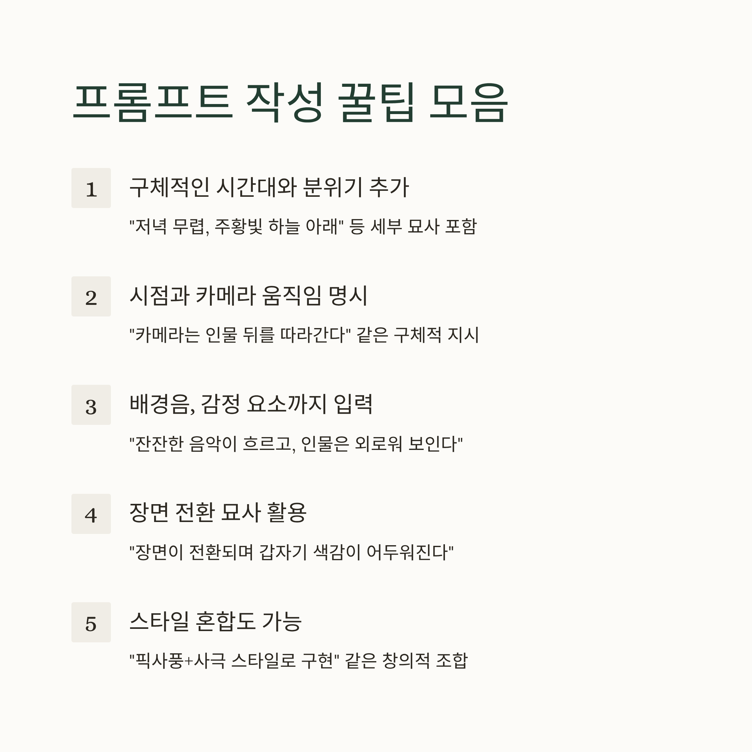 | 장면 해석 강화 | 시간, 장소, 분위기까지 구체적으로 텍스트화하기 |