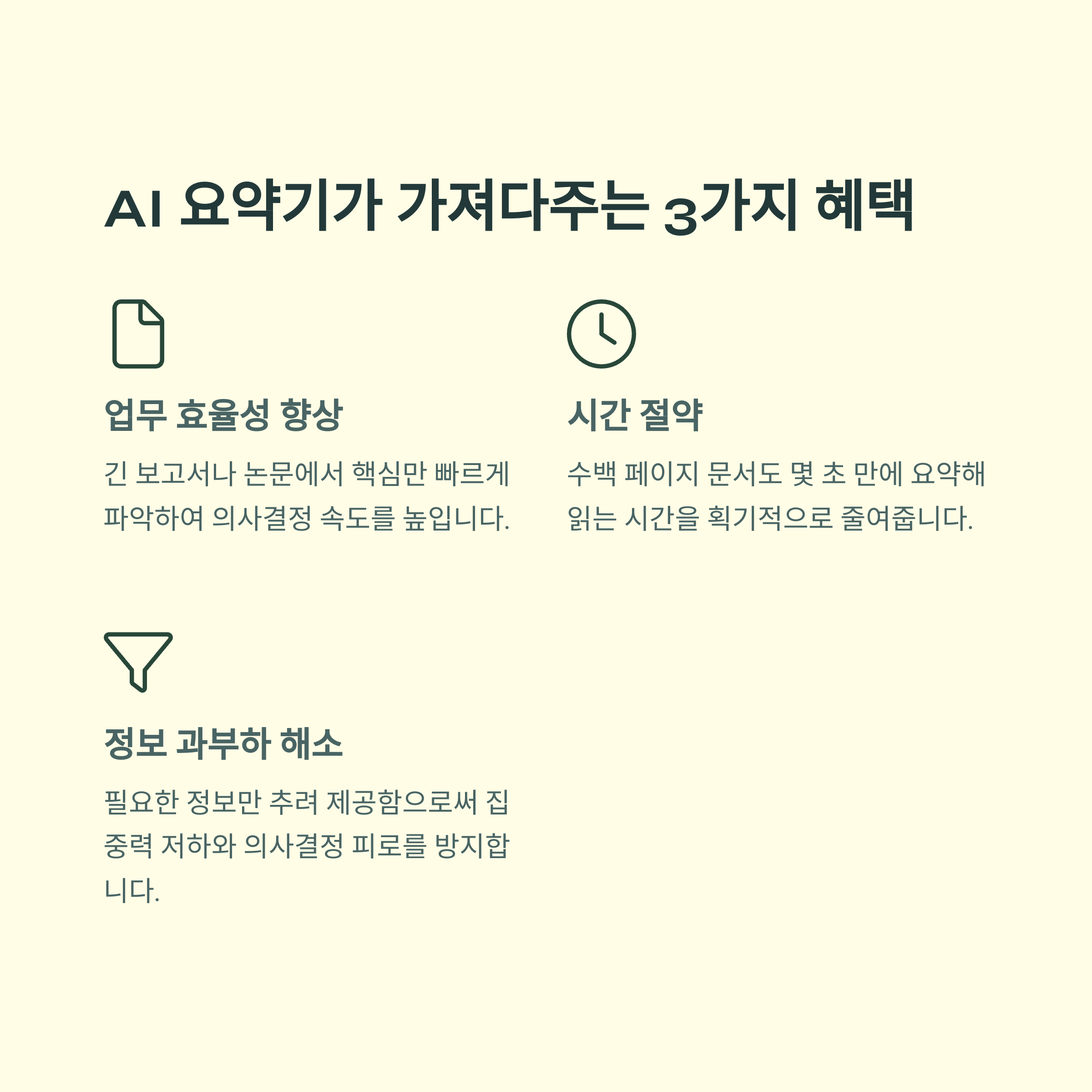 "수십 장의 리포트, 어떻게 한 줄로 요약할 수 있을까요?"