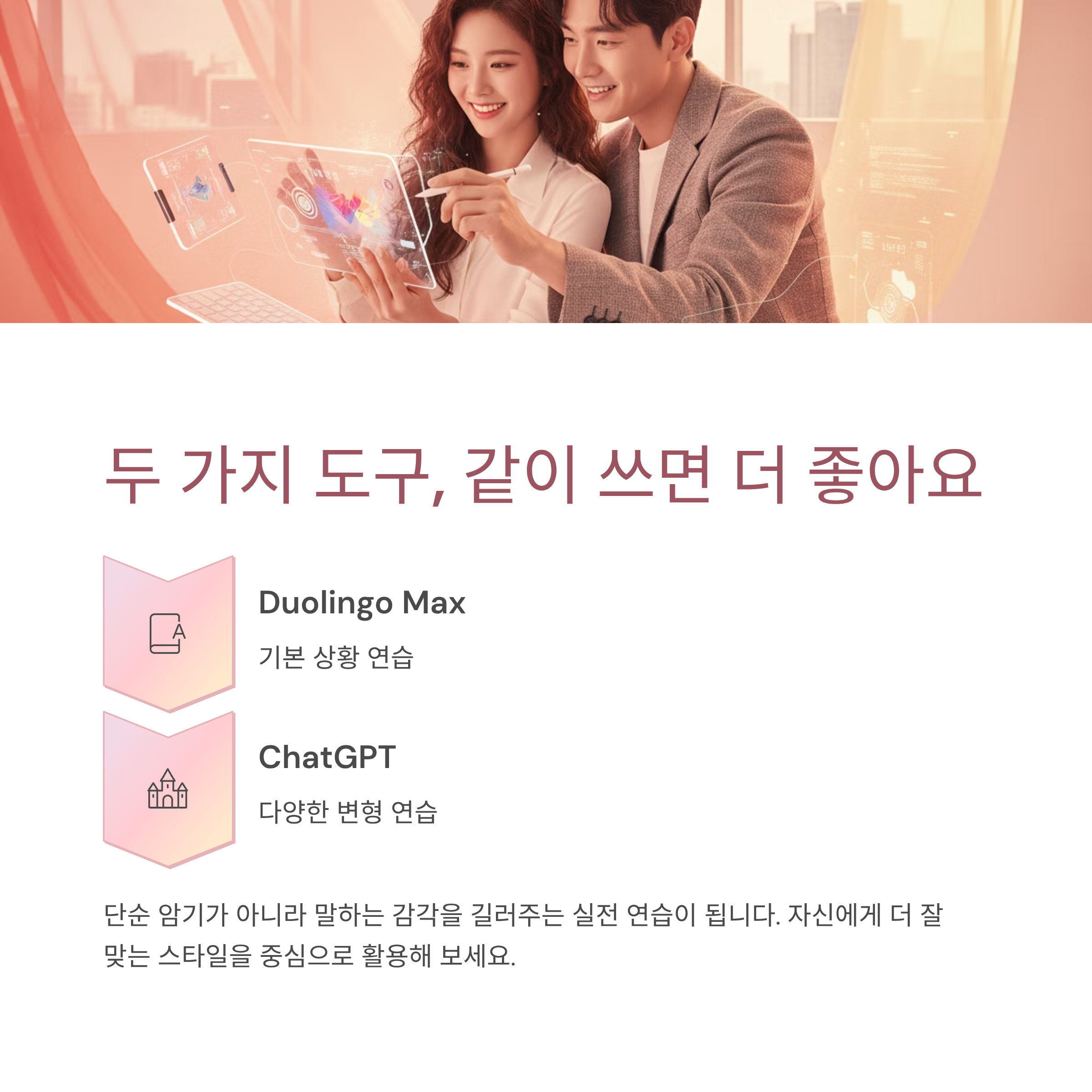 Duolingo Max로 기본 상황 연습 → ChatGPT로 다양한 변형 연습