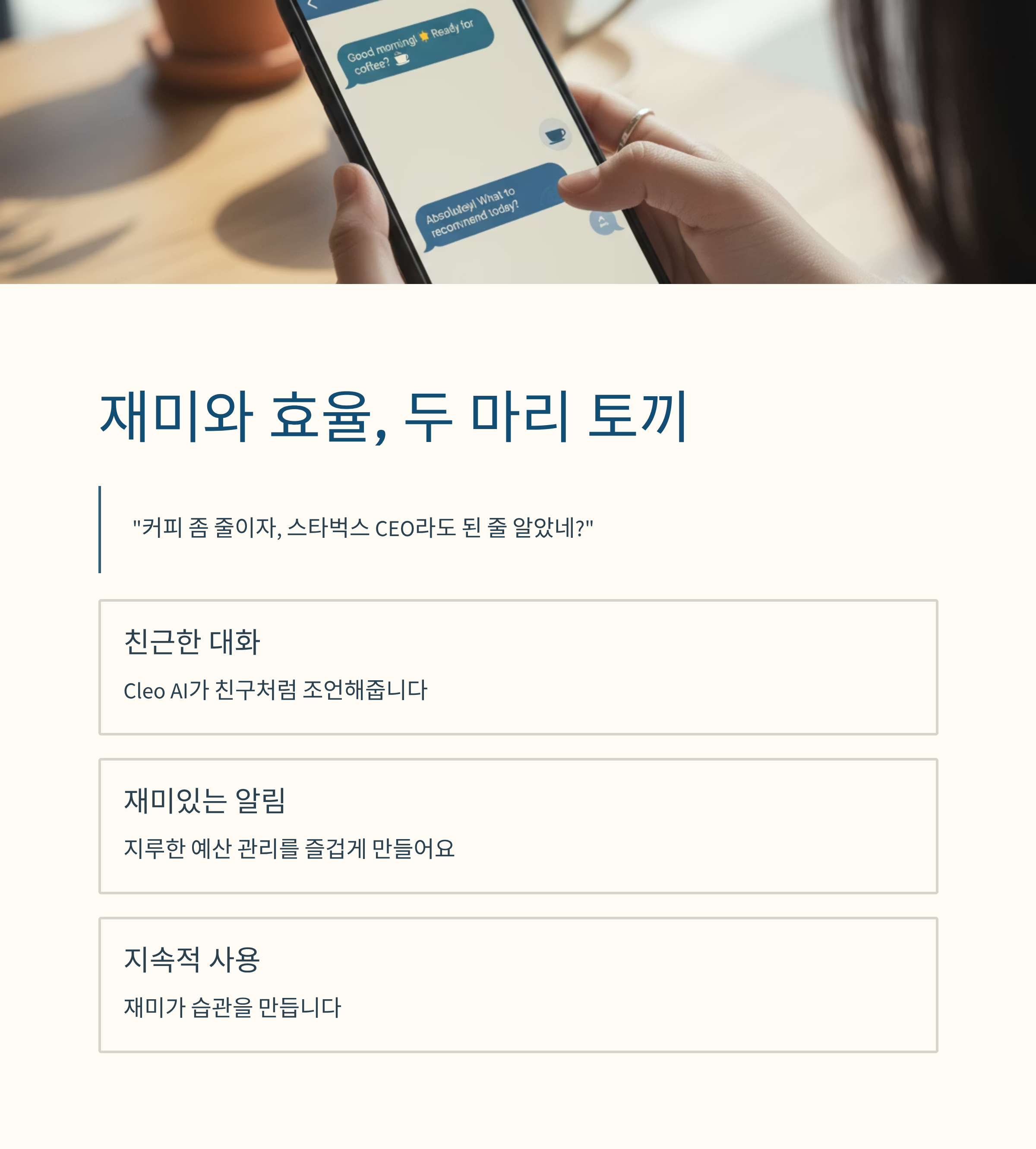 | 민지 | Cleo AI | "처음엔 가볍게 썼는데, 이젠 Cleo 없으면 월말 결산이 안 돼요!" |