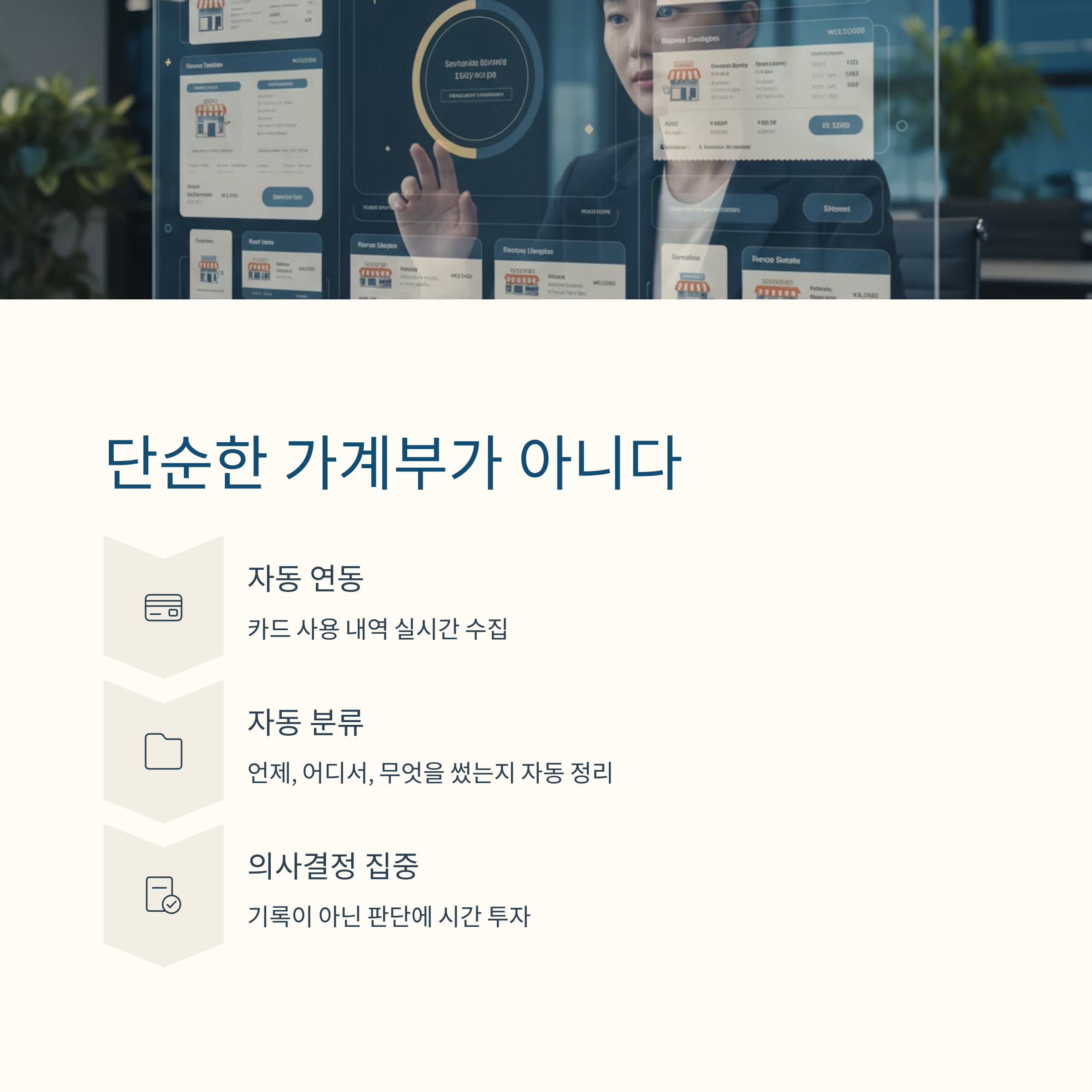 자동으로 분석해 "언제, 어디서, 무엇을 썼는지"를 자동 분류해줘요.
