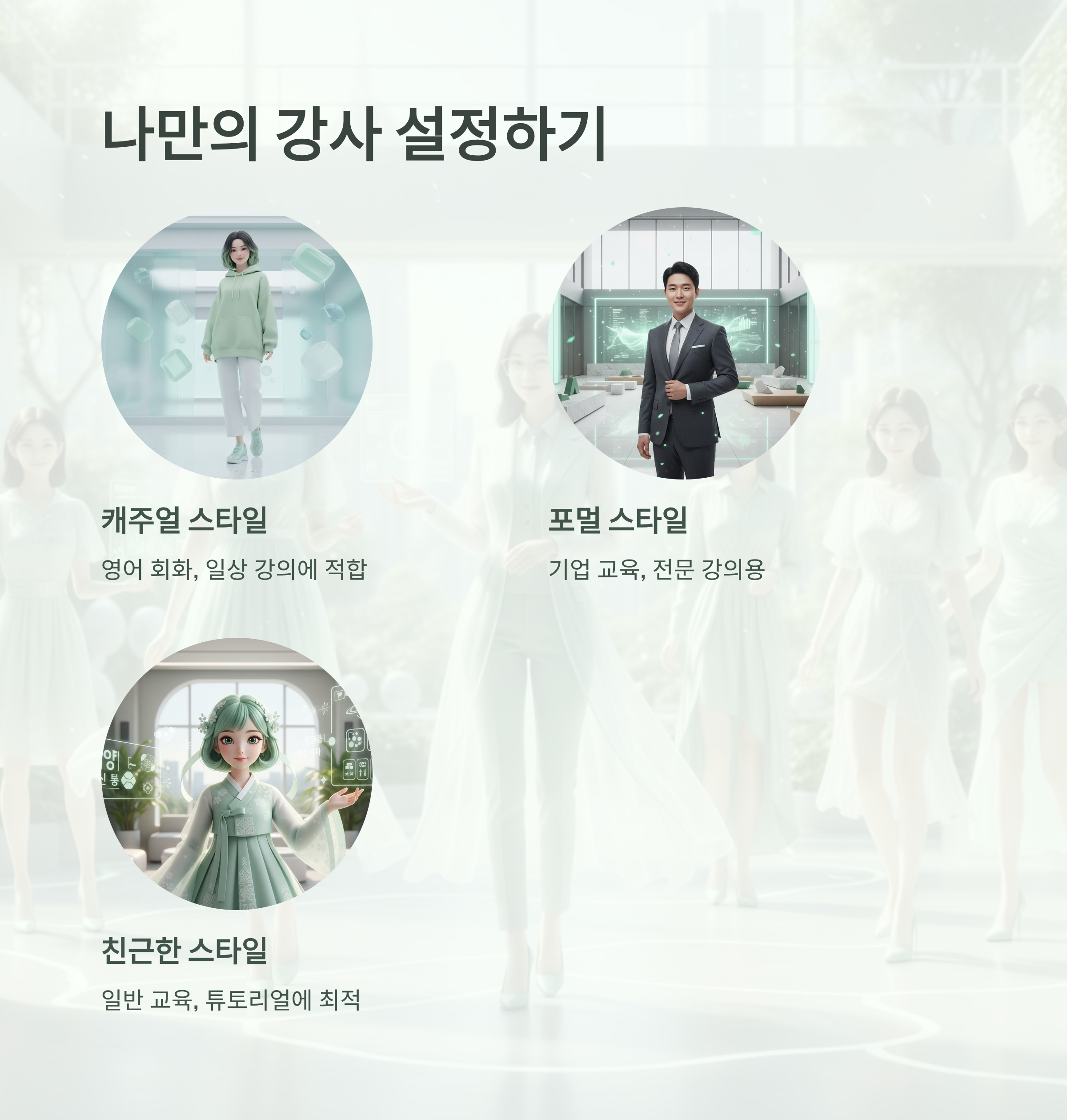 기업 교육 영상엔 포멀한 스타일의 아바타를 고르는 식이죠.