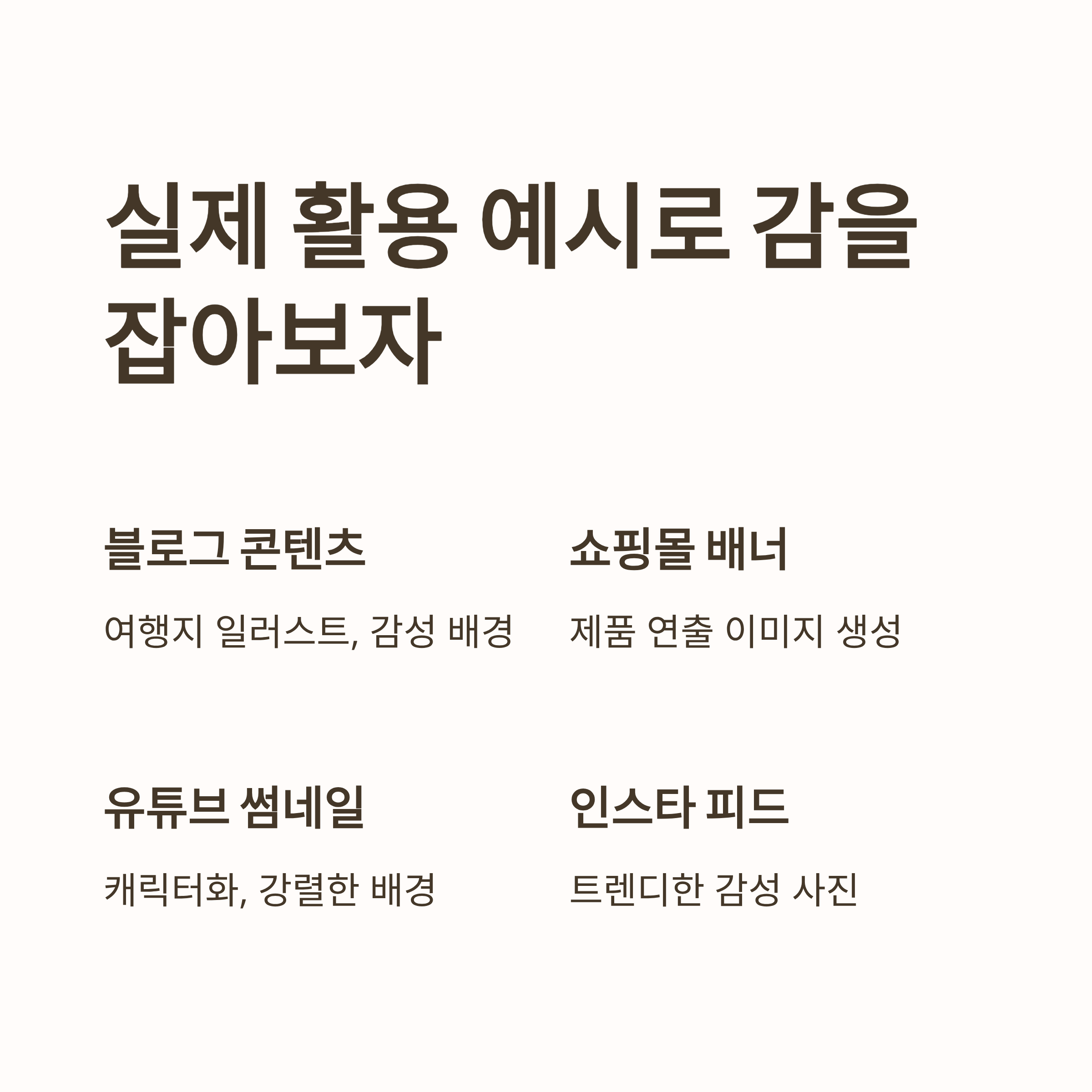 | 사용 목적 | 활용 예시 | 스타일 키워드 예시 |