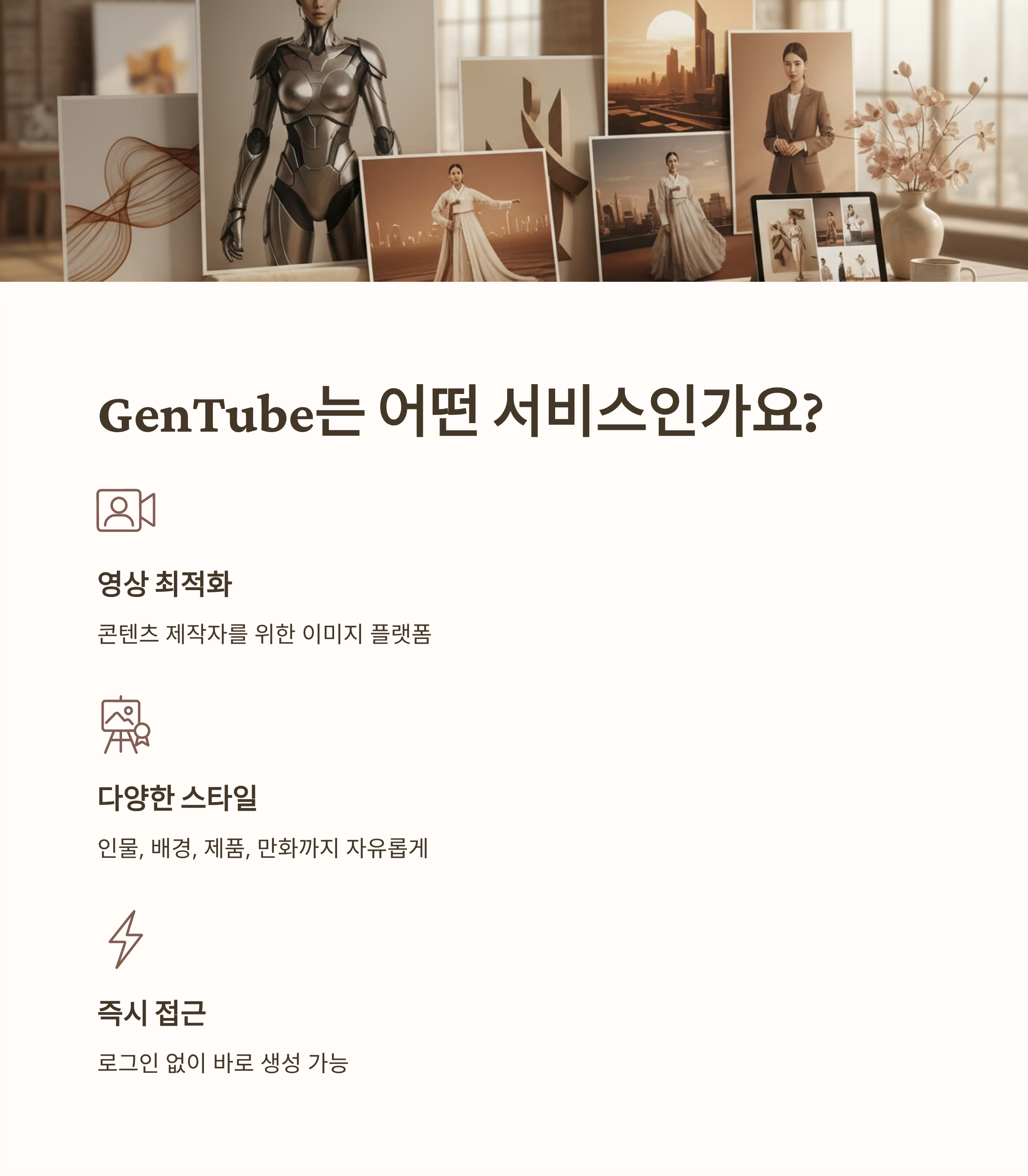 GenTube는 '무료+무제한'이라는 압도적인 장점이 있기 때문에, 처음 AI 이미지를 시도하는 분들에게 특히 적합합니다.