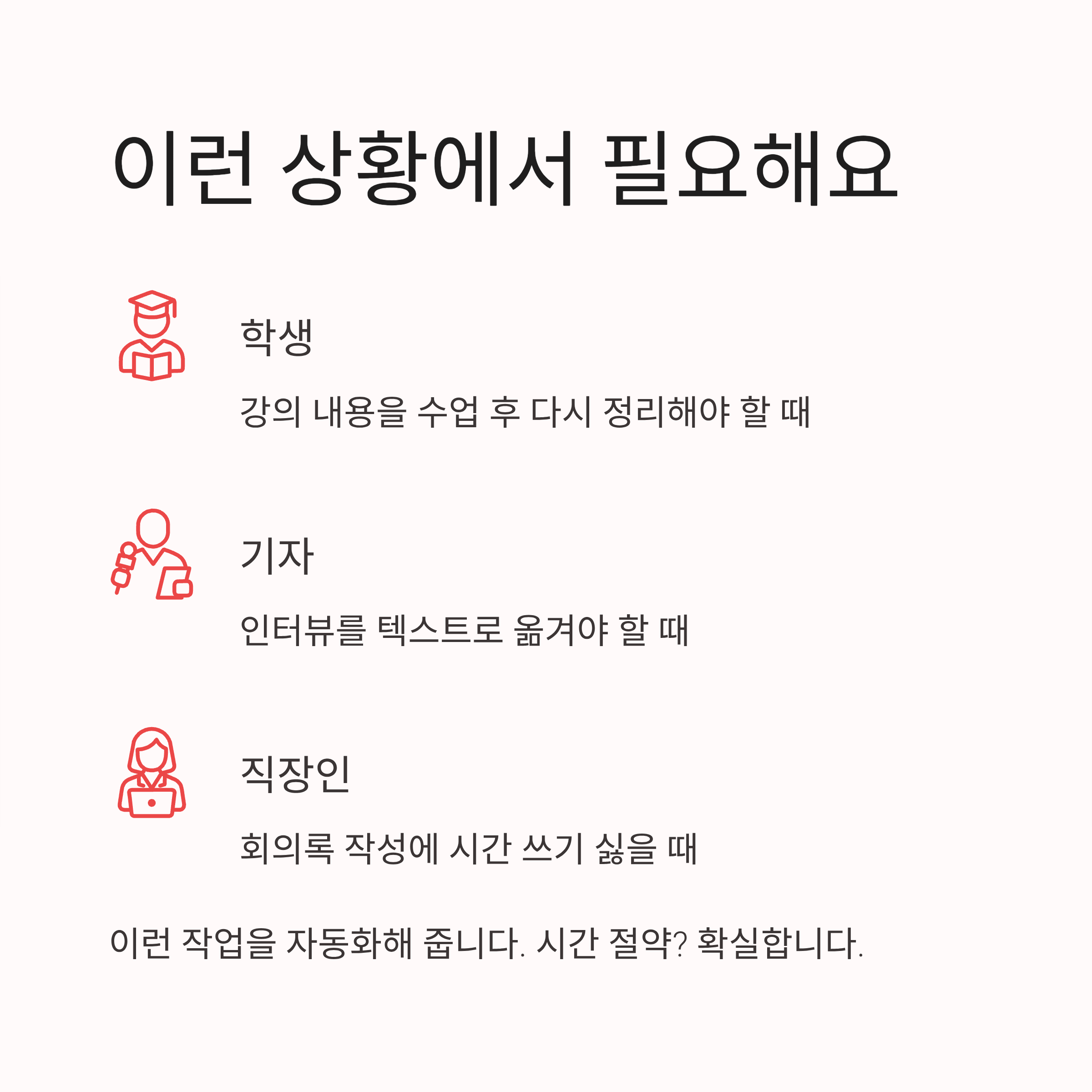 강의 정리, 인터뷰 필사, 회의록 정리에 지쳤다면 한 번 써볼 만합니다.