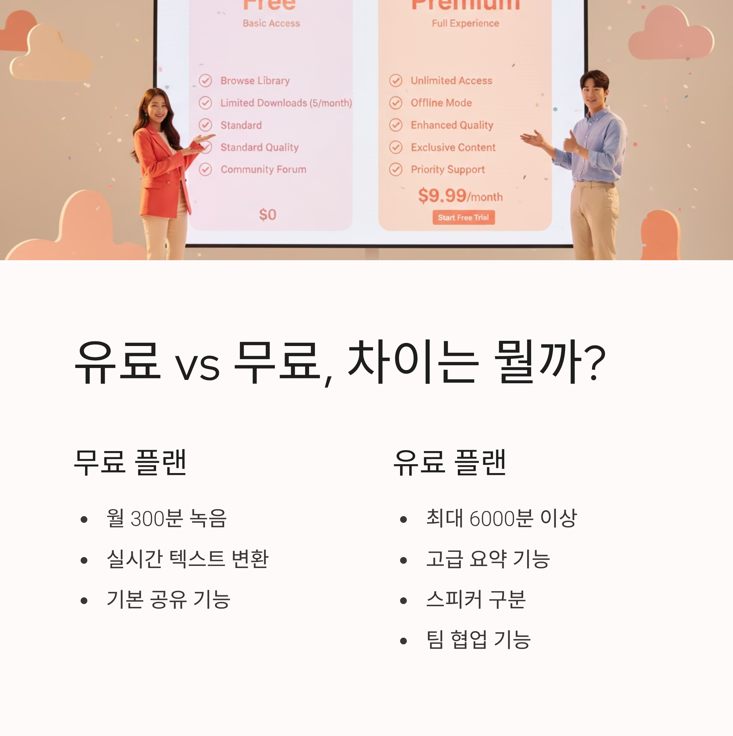 | 무료 플랜 | 월 300분 | 실시간 텍스트, 기본 공유 |