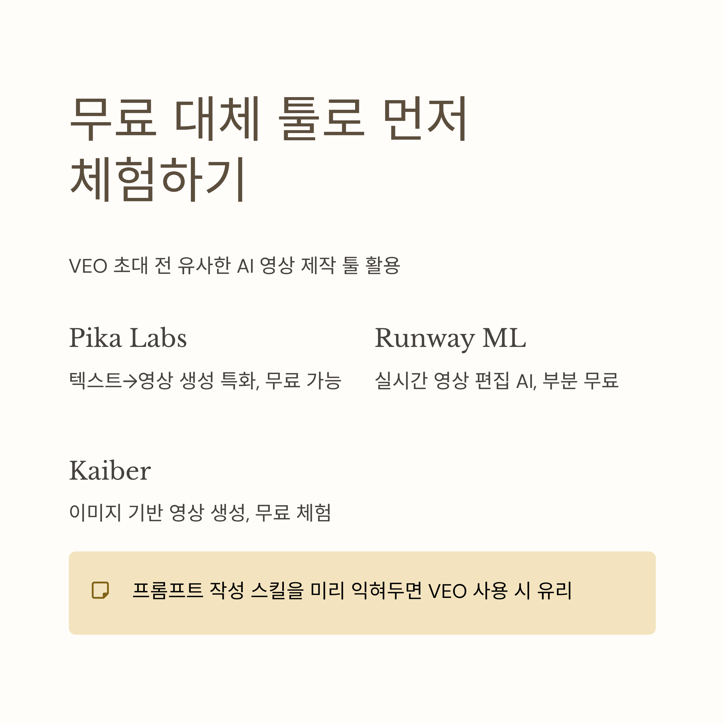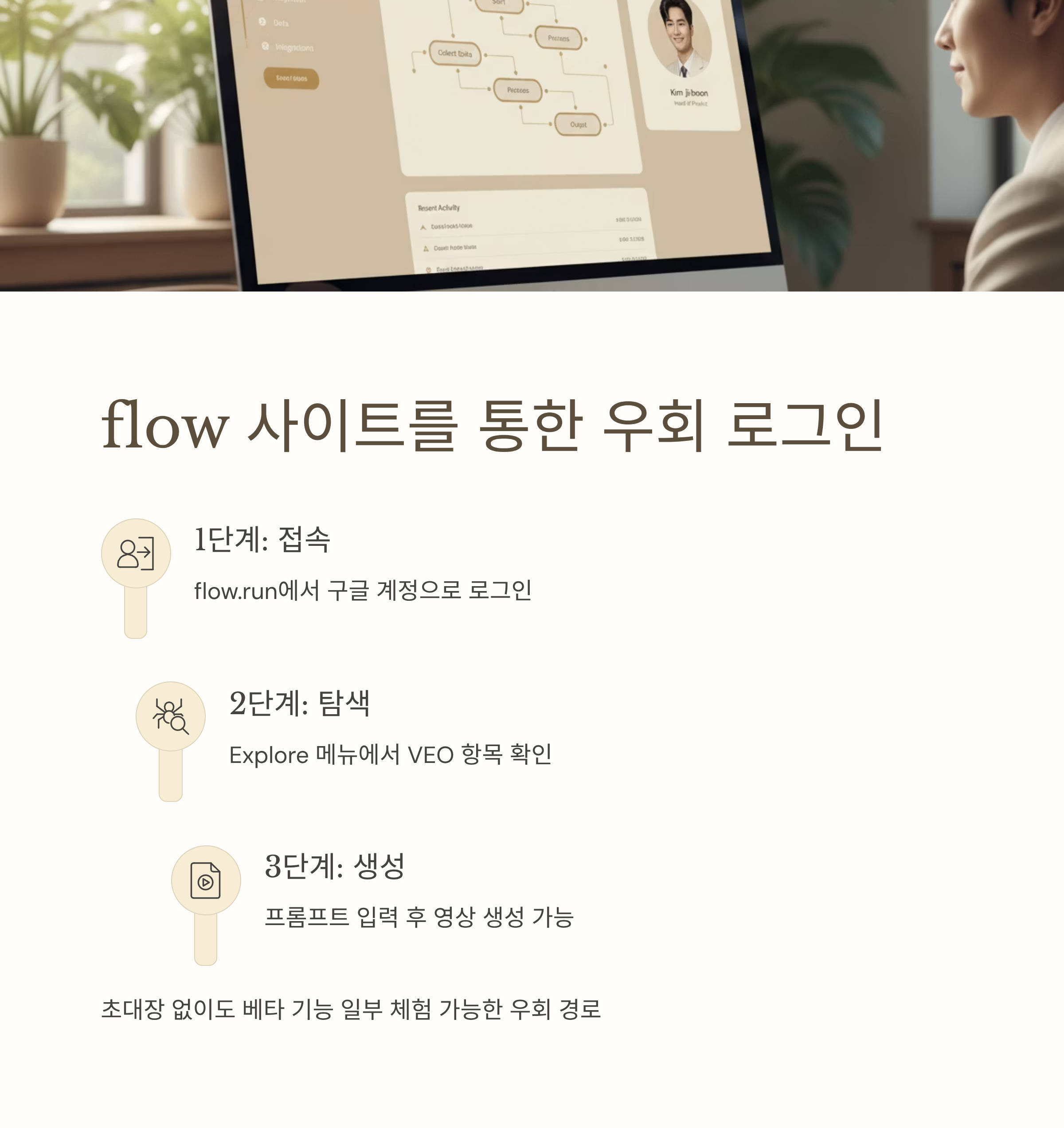 | 한국 사용자 A | 로그인 후 VEO 앱 보임 | 프롬프트 입력 가능 |