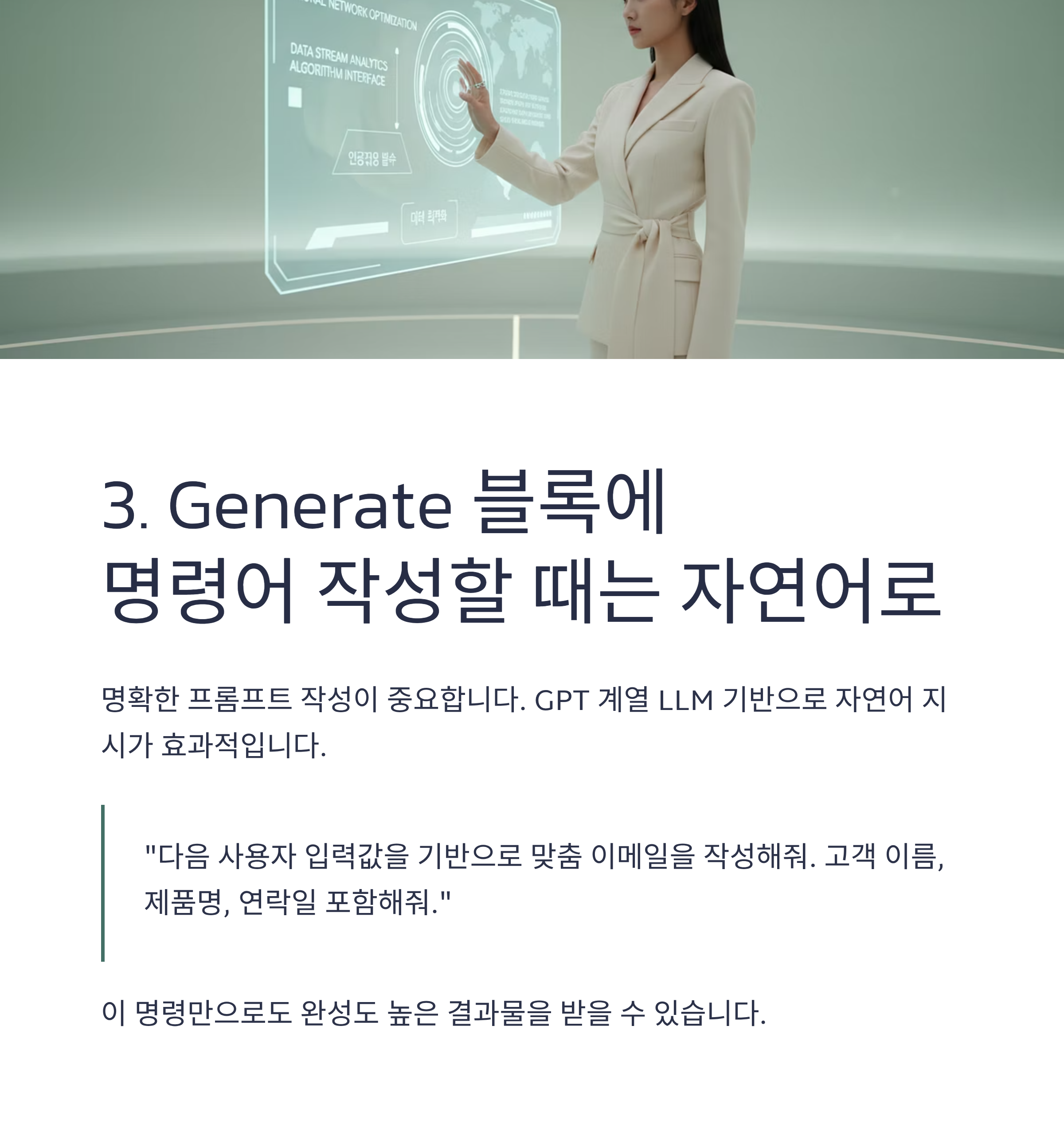 3. Generate 블록에 명령어 작성할 때는 자연어로