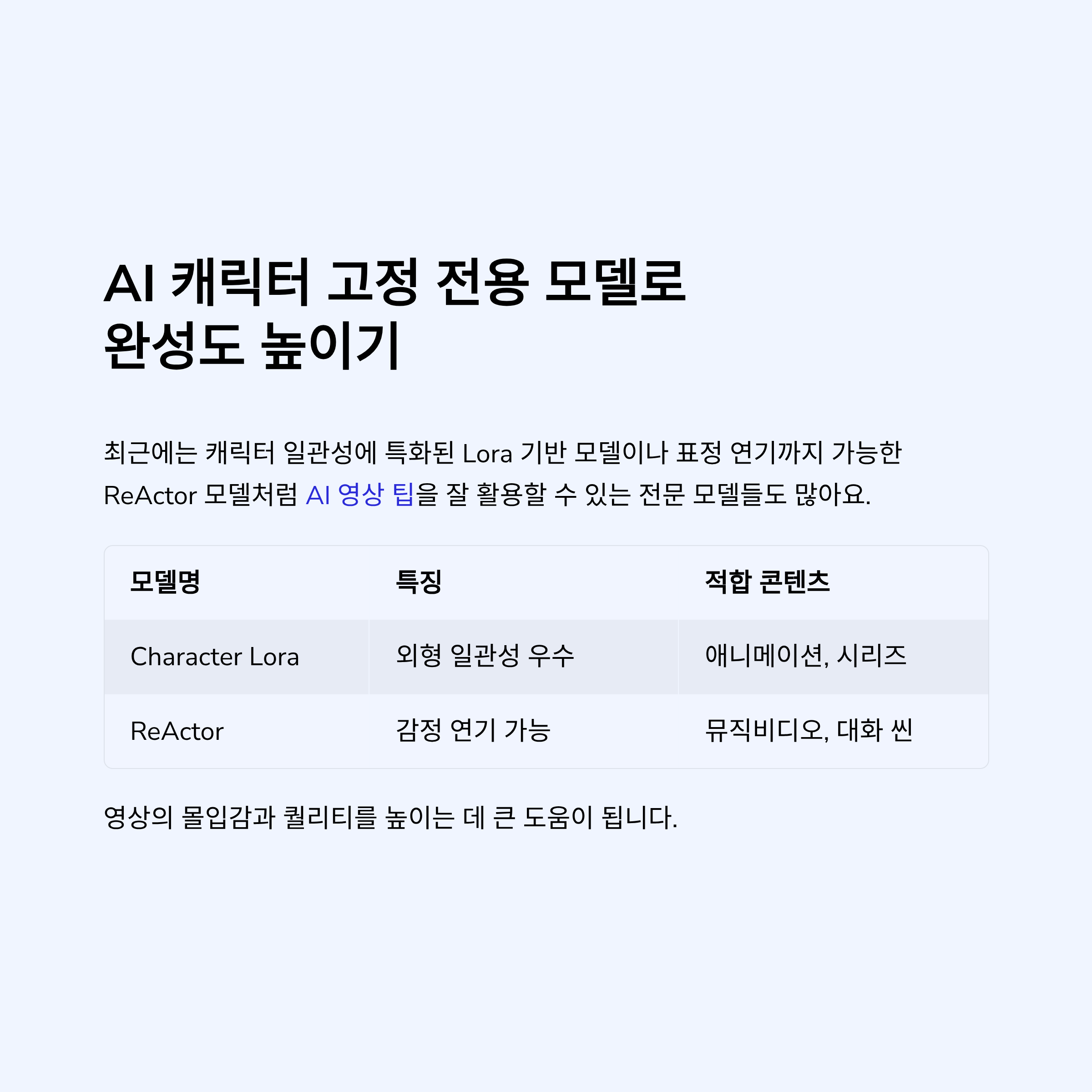 AI 캐릭터 고정 전용 모델로 완성도 높이기