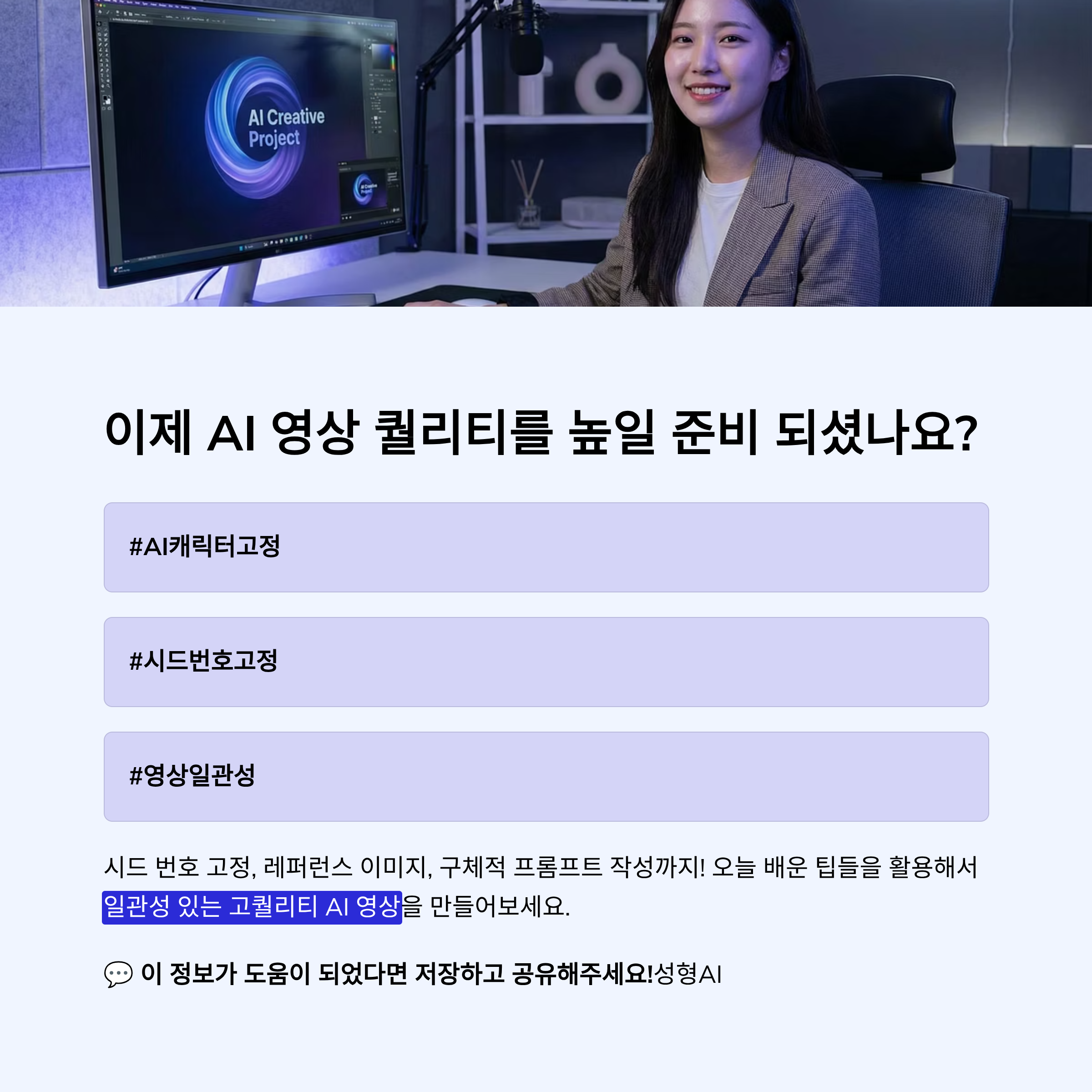 오늘은 'AI 캐릭터 고정'이 왜 중요한지, 그리고 영상 일관성을 유지하는 실전 팁들을