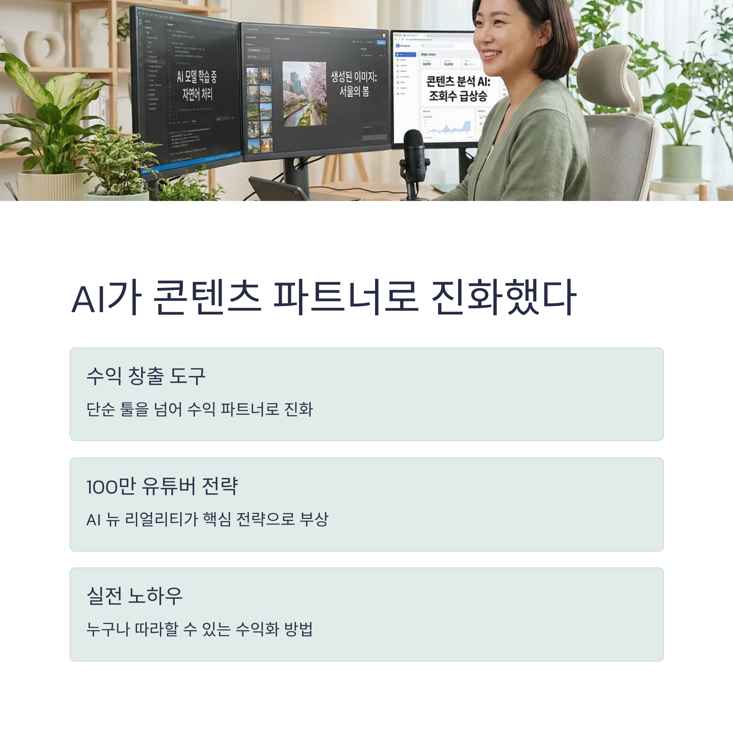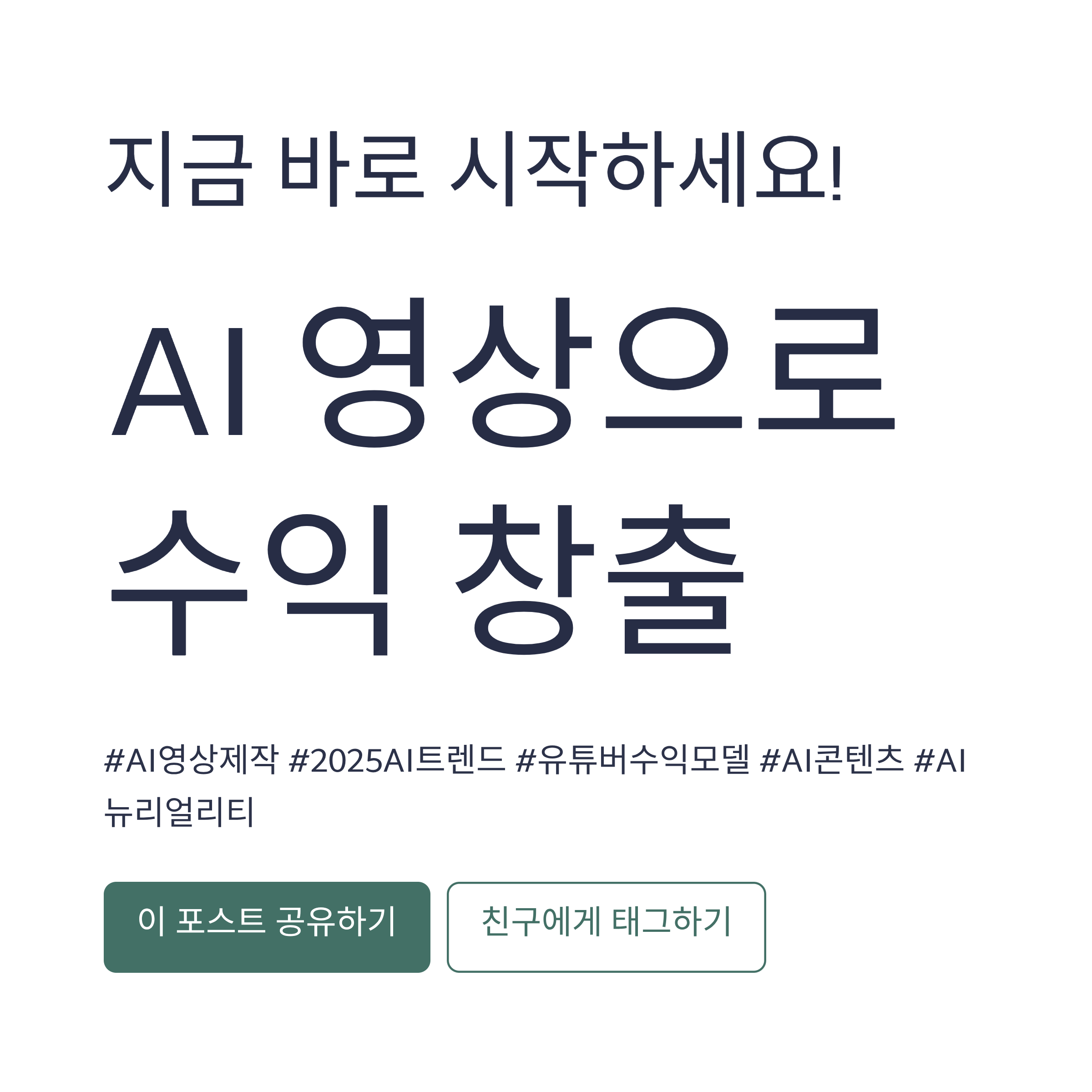 2025년, AI는 단순한 툴을 넘어 수익을 창출하는 콘텐츠 파트너로 진화하고 있습니다.