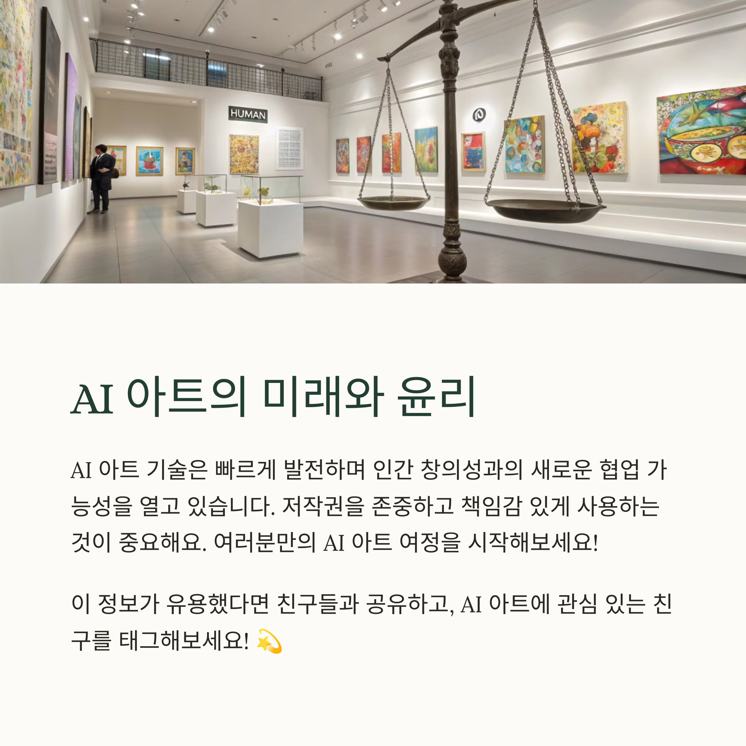 앞으로는 AI 아트가 단순한 재미를 넘어서, 광고, 게임, 패션 등 다양한 산업에서 주력 도구가 될 가능성이 높아요. 특히 실시간 생성 기술이 발전하면, 사람과 AI가 협업해서 실시간으로 작품을 만들어내는 시대도 올 수 있겠죠.