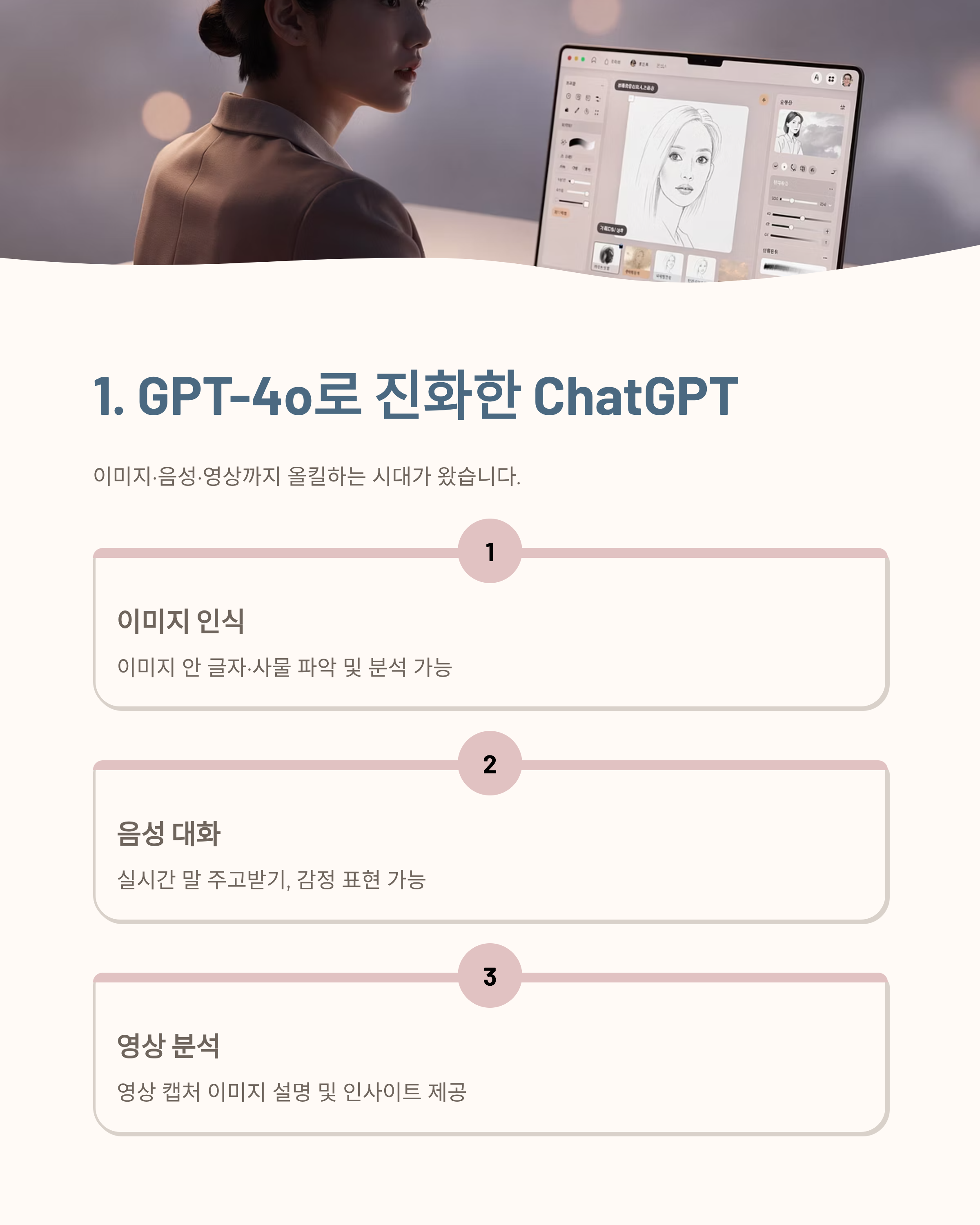 | ChatGPT (GPT-4o) | 이미지·음성 통합형 | 업무 자동화, 콘텐츠 제작 |