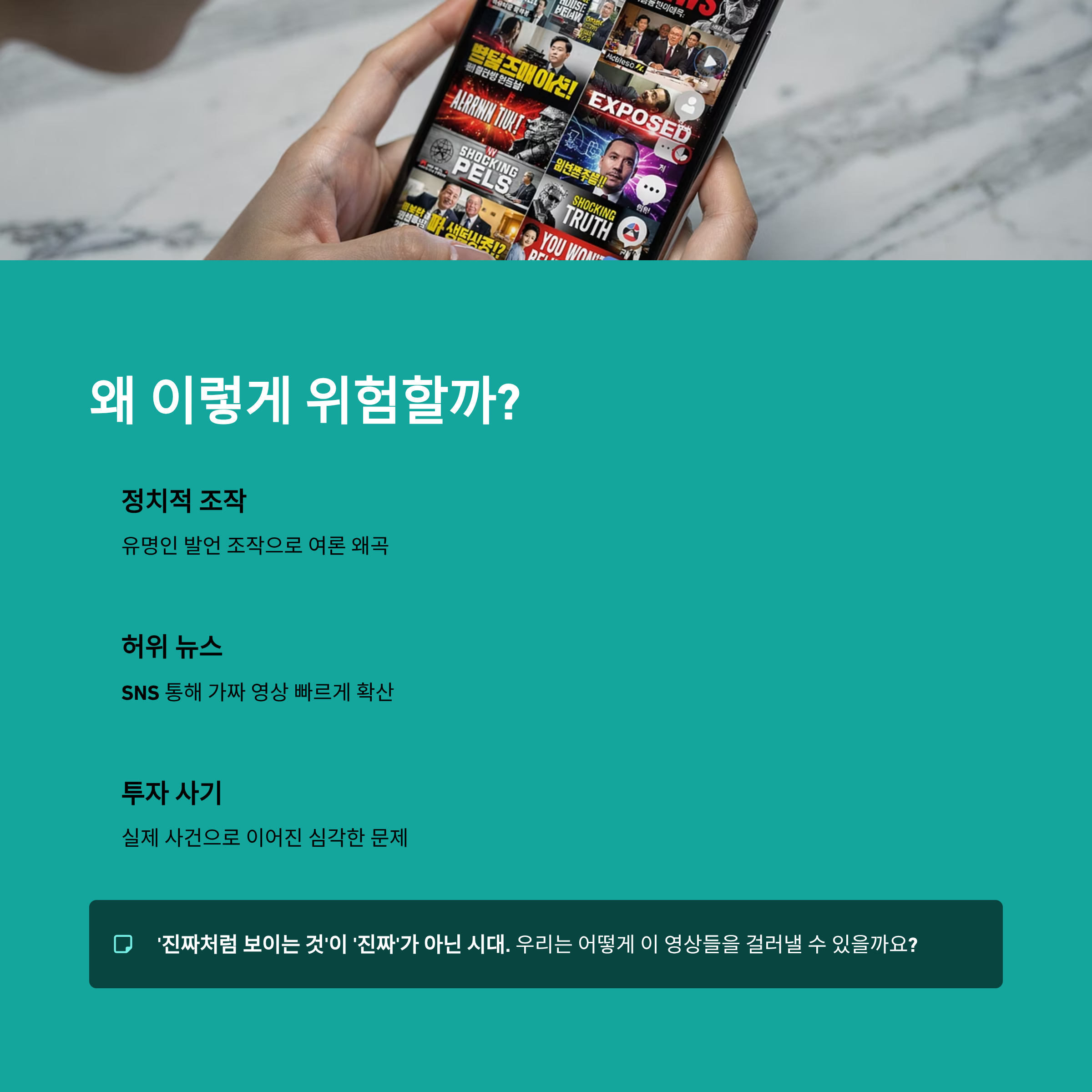 가장 중요한 건 우리가 가짜에 속지 않으려는 ‘의식’입니다.