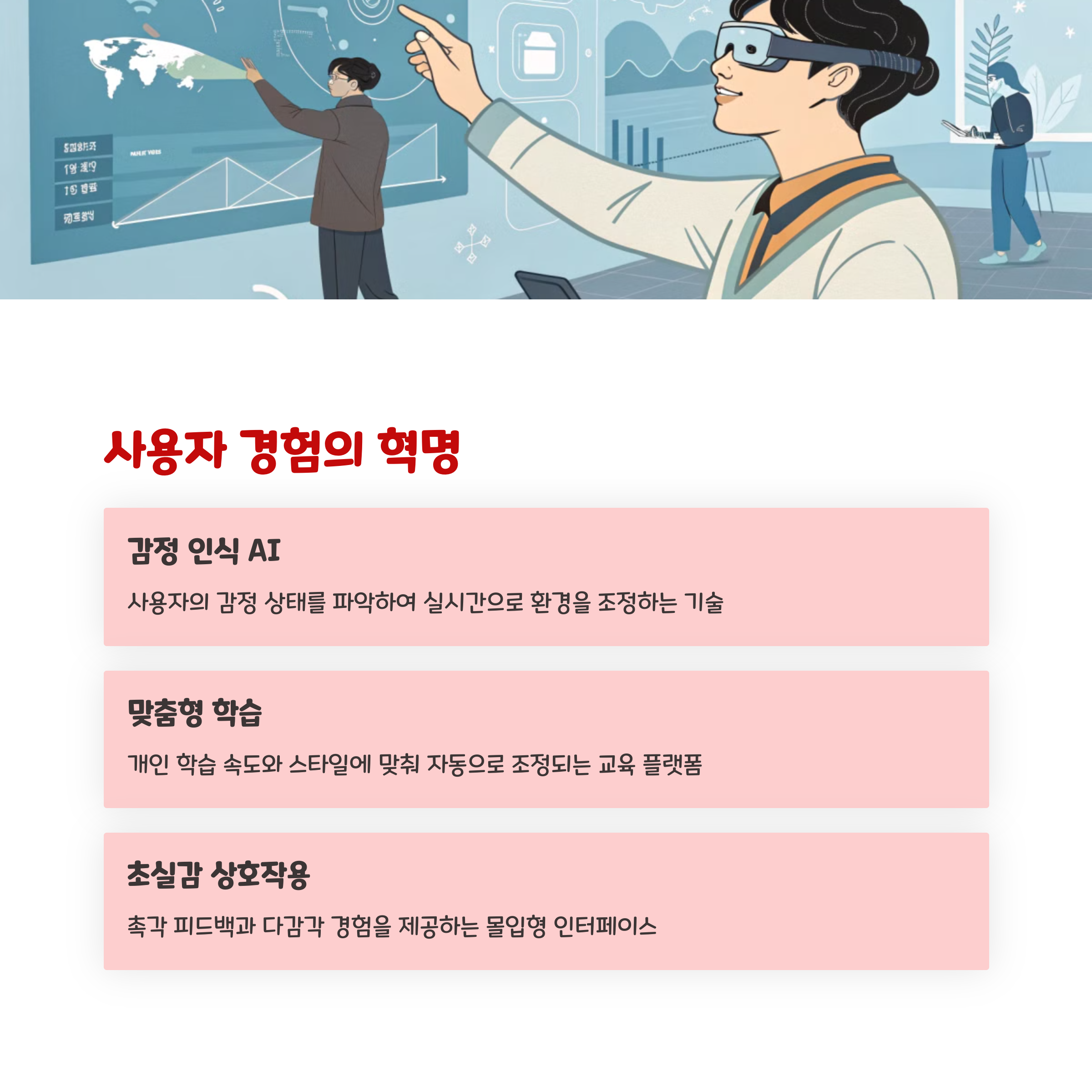 AI와 메타버스가 만나면 단순한 시청각 자극을 넘어서, ‘몰입형 인터랙션’을 가능하게 합니다. 예전엔 마우스 클릭 몇 번이 전부였다면, 이제는 사용자의 말투, 표정, 심지어 시선까지 분석해서 맞춤형 반응을 주는 세상이에요. 마치 게임 캐릭터가 나를 알아보고 대화하는 느낌? 그것도 진짜 감정이 담긴 것처럼요. 심지어 내가 좋아할 만한 공간으로 유도하기도 하고요. 이게 UX의 끝판왕 아닐까요?