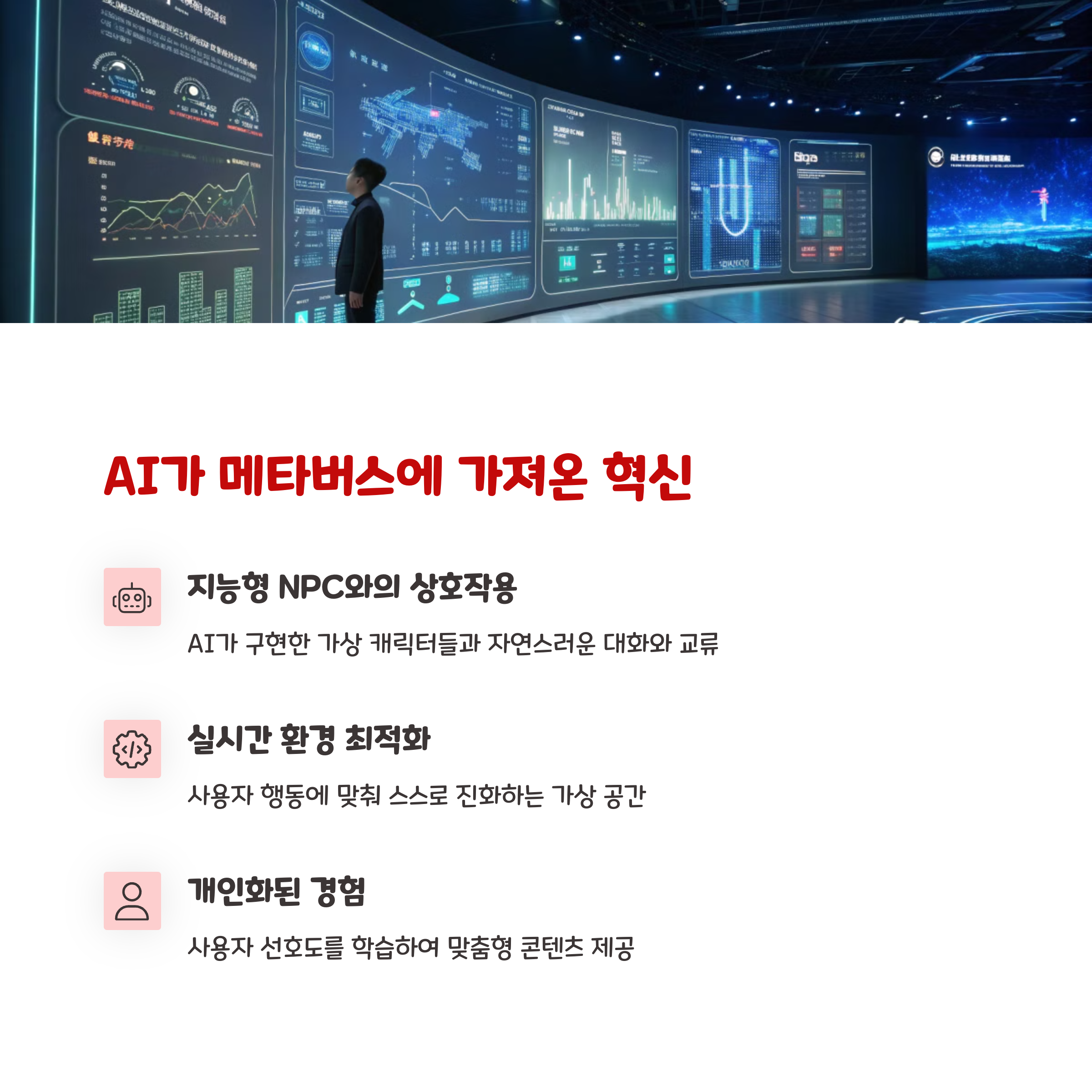 우리가 상상하던 미래는 멀리 있지 않아요. AI와 메타버스가 함께 만들어가는 가상현실은 이미 우리 곁에 와 있고, 그 속도는 상상을 초