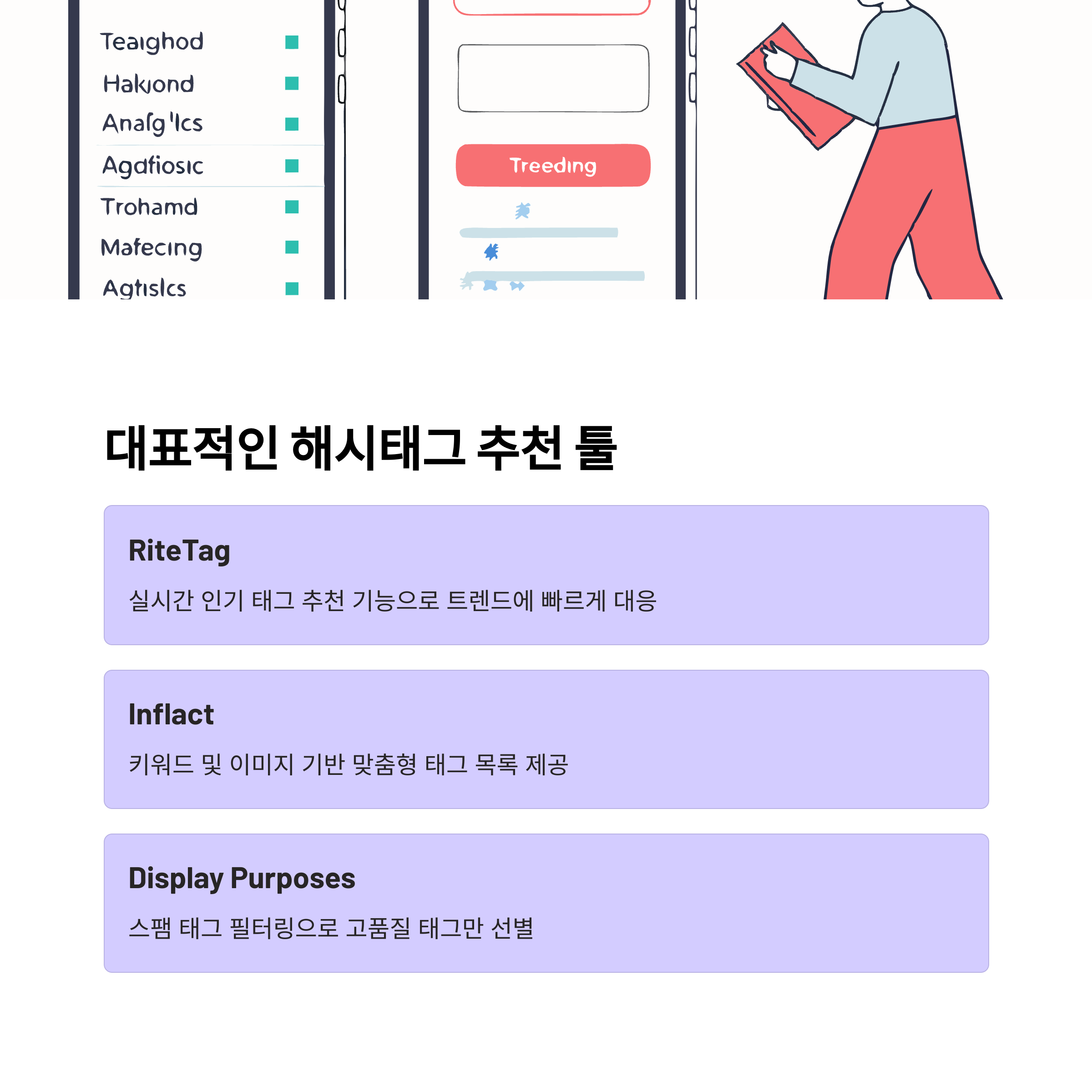 | RiteTag | 실시간 인기 해시태그 제안, 이미지 기반 태그 생성 | 유료 (프리 트라이얼 제공) |
