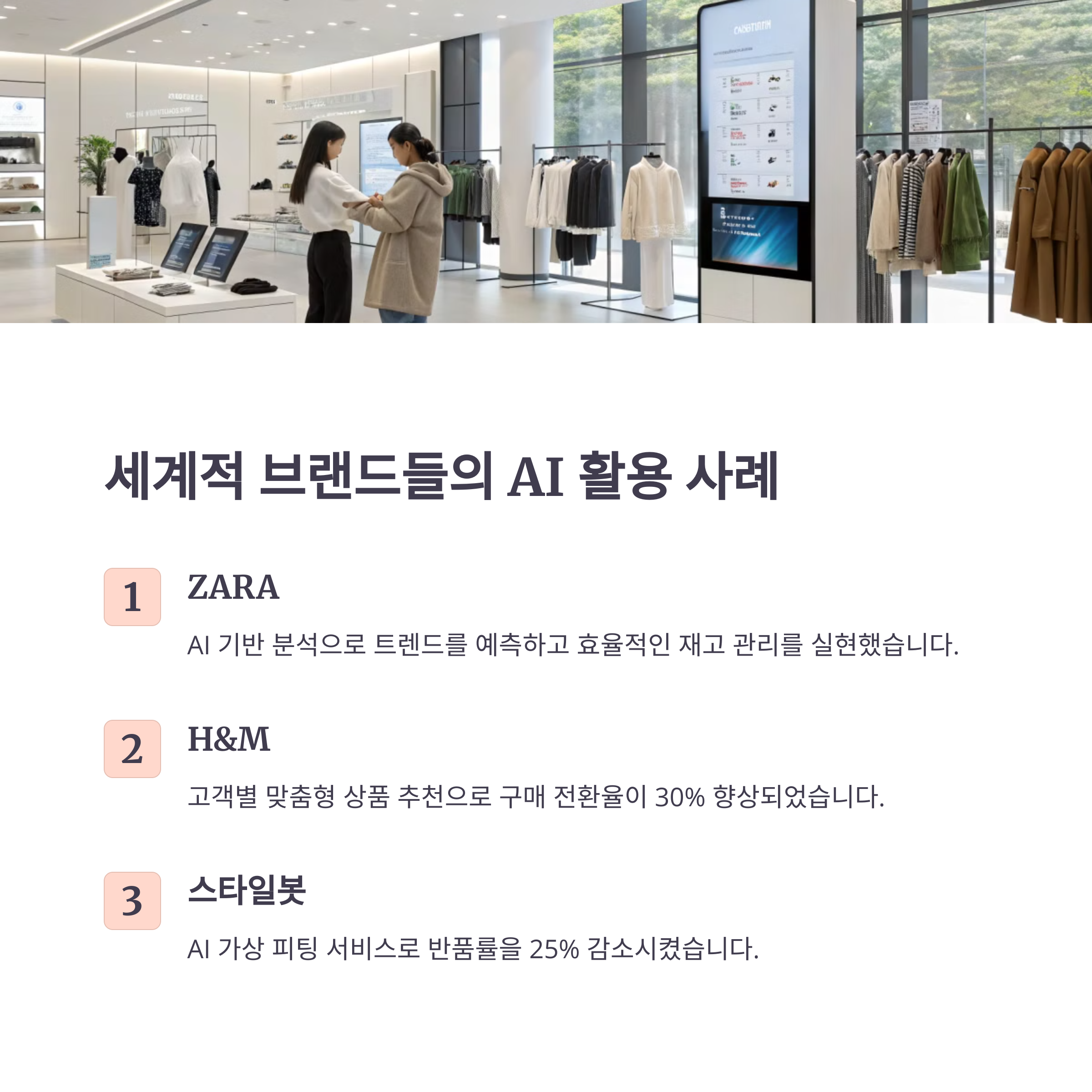 | ZARA | AI를 활용한 수요 예측으로 재고를 최소화하고 빠른 신상품 출시 |