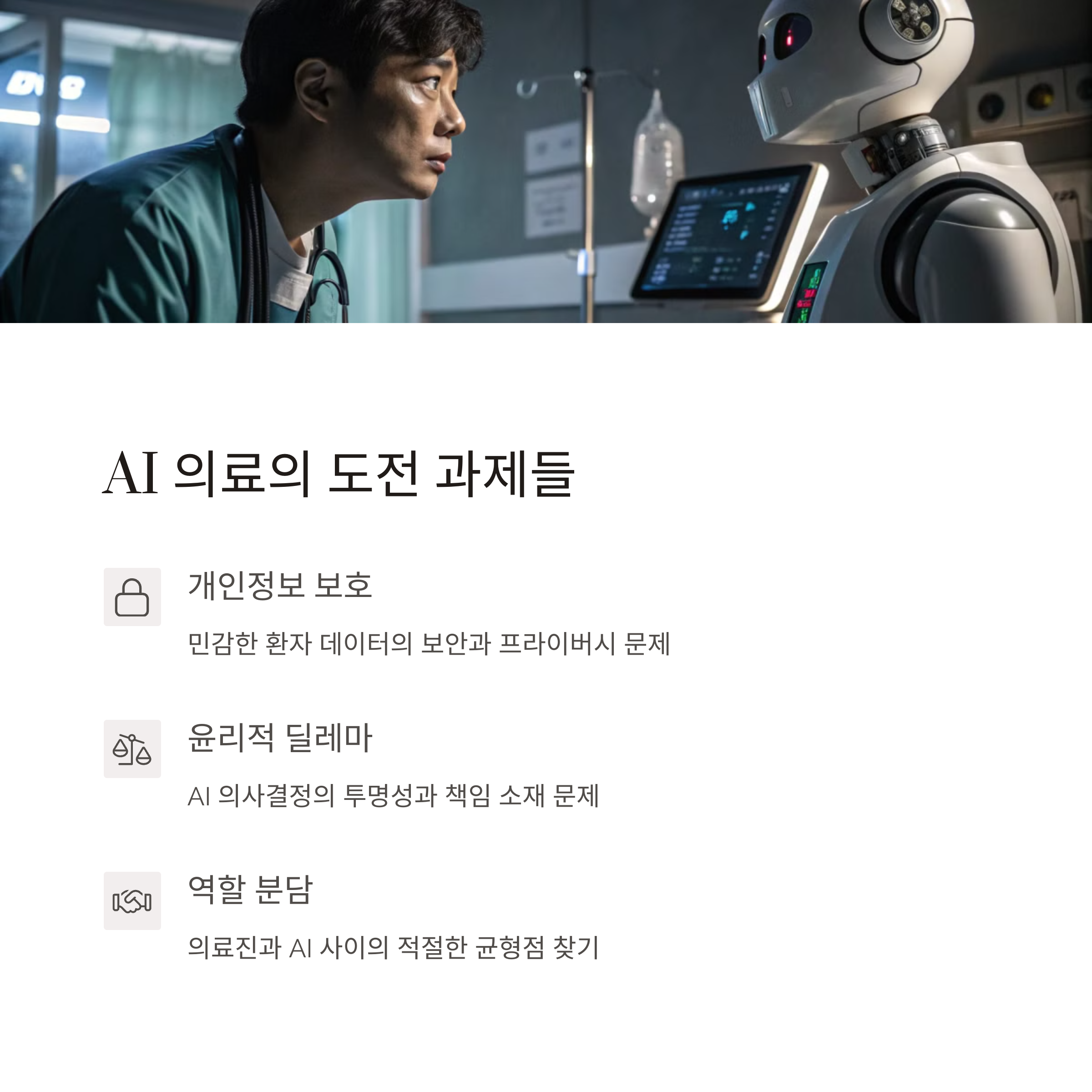 AI는 보조 역할에 그치며, 의료진의 최종 판단과 결정을 대체할 수 없습니다.
