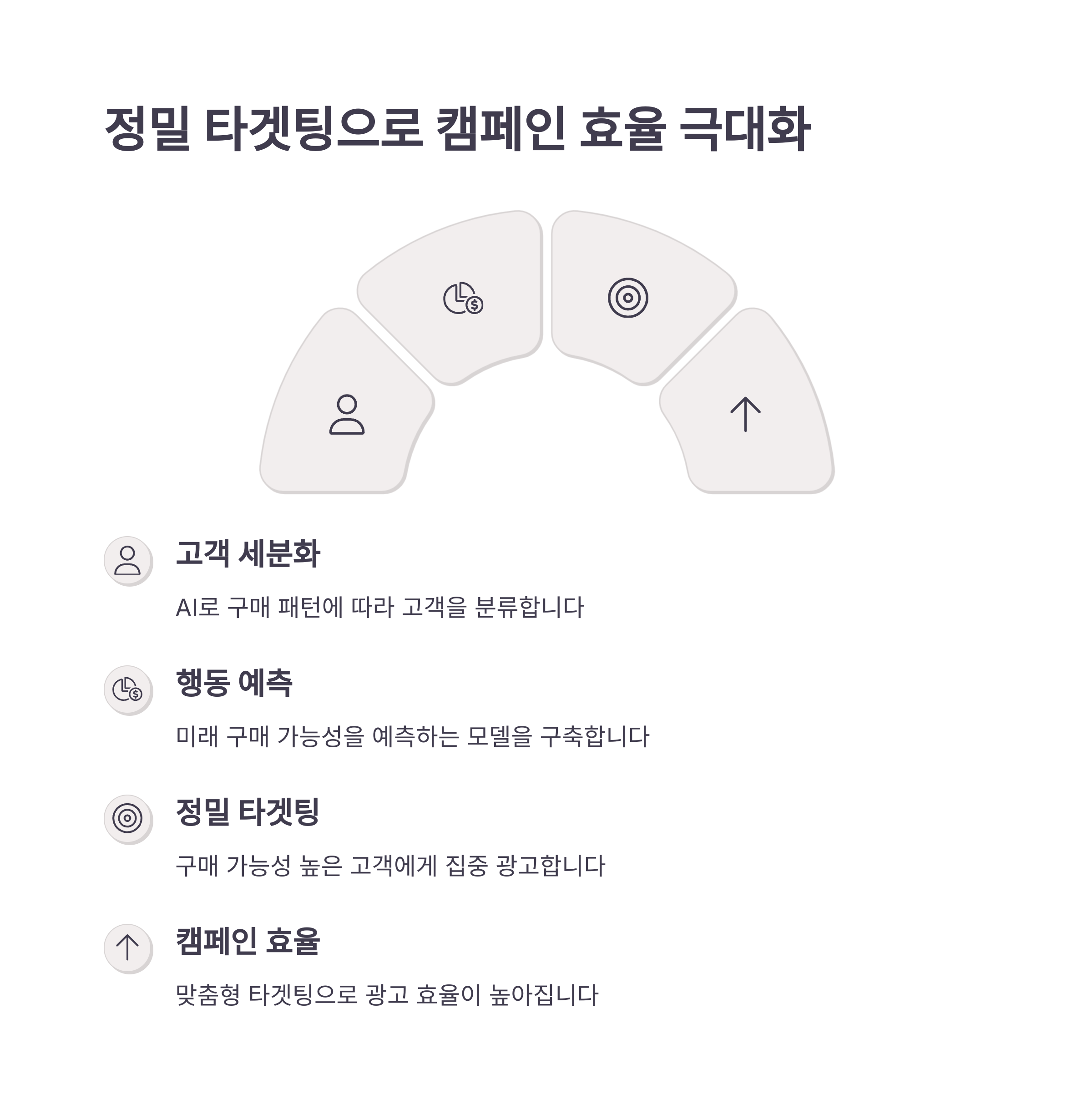 고객을 "누구나" 대상으로 삼는 건 이제 구시대적 발상이죠. AI는 구매 이력, 반응 패턴, 관심사 등을 바탕으로 세밀한 타게팅 전략을 도와줘요.