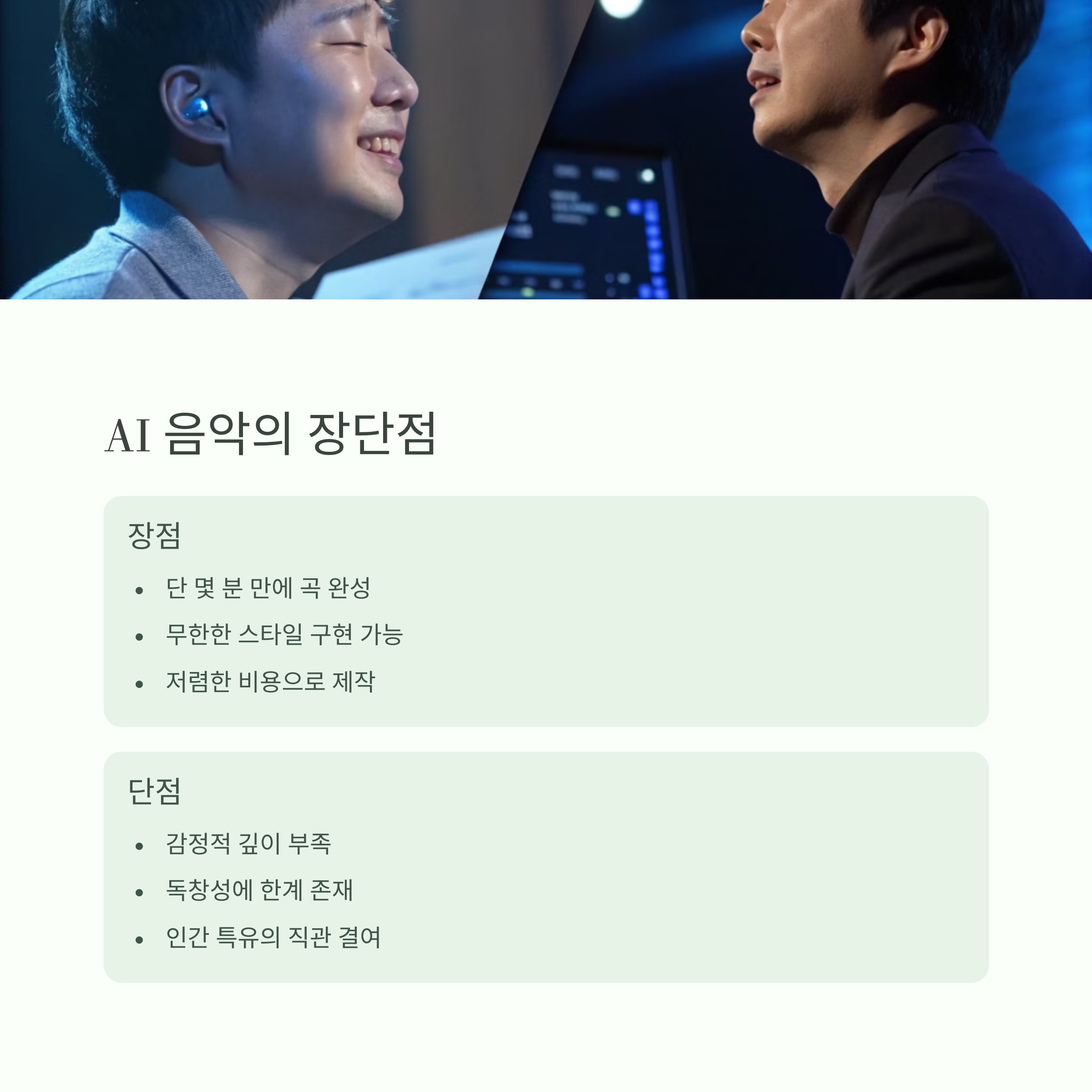 AI 작곡이 빠르게 발전하고 있지만, 여전히 장단점이 존재해요. 특히 효율성과 창의성 측면에서 논의가 많습니다.
