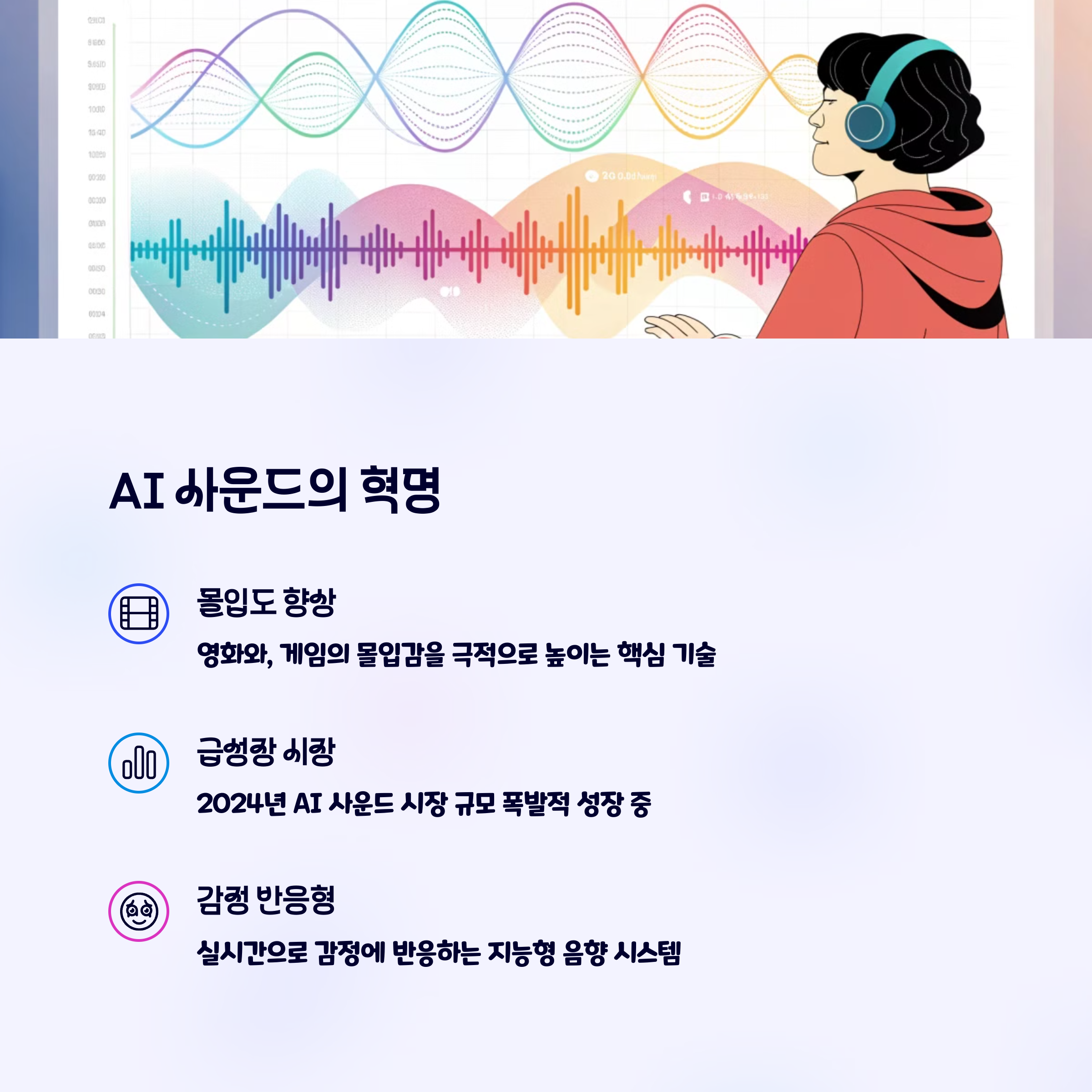 미래의 사운드는 단순히 들리는 소리가 아니라, '느껴지는 소리'로 진화할 거예요. AI는 사운드를 감정적으로 해석하고, 사용자 경험에 맞게 커스터마이징하는 방향으로 발전 중이에요.