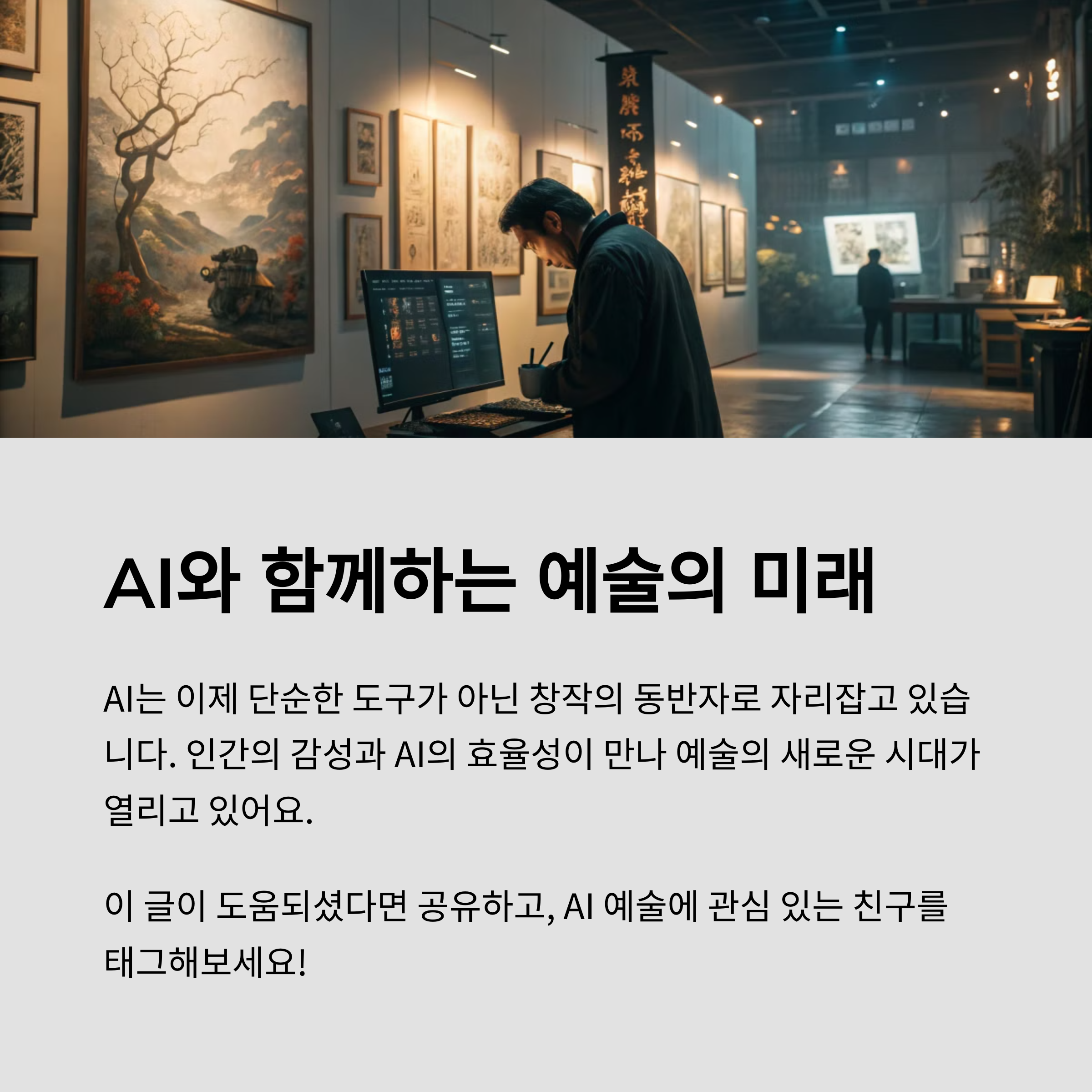 이제 예술도 기술과 함께 진화하고 있어요. 솔직히 처음엔 막연한 불안감도 있었는데요, AI와 협업하는 작가들의 이야기를 접하면서 오히려 창작의 자유가 넓어진다는 걸 느꼈습니다. 앞으로 예술가는 ‘혼자’가 아니라 ‘함께’ 작업하는 존재가 될지도 몰라요. 여러분은 어떻게 생각하시나요? 아래 댓글로 생각을 남겨주시면 너무 반가울 것 같아요. AI 예술, 함께 고민해봐요!