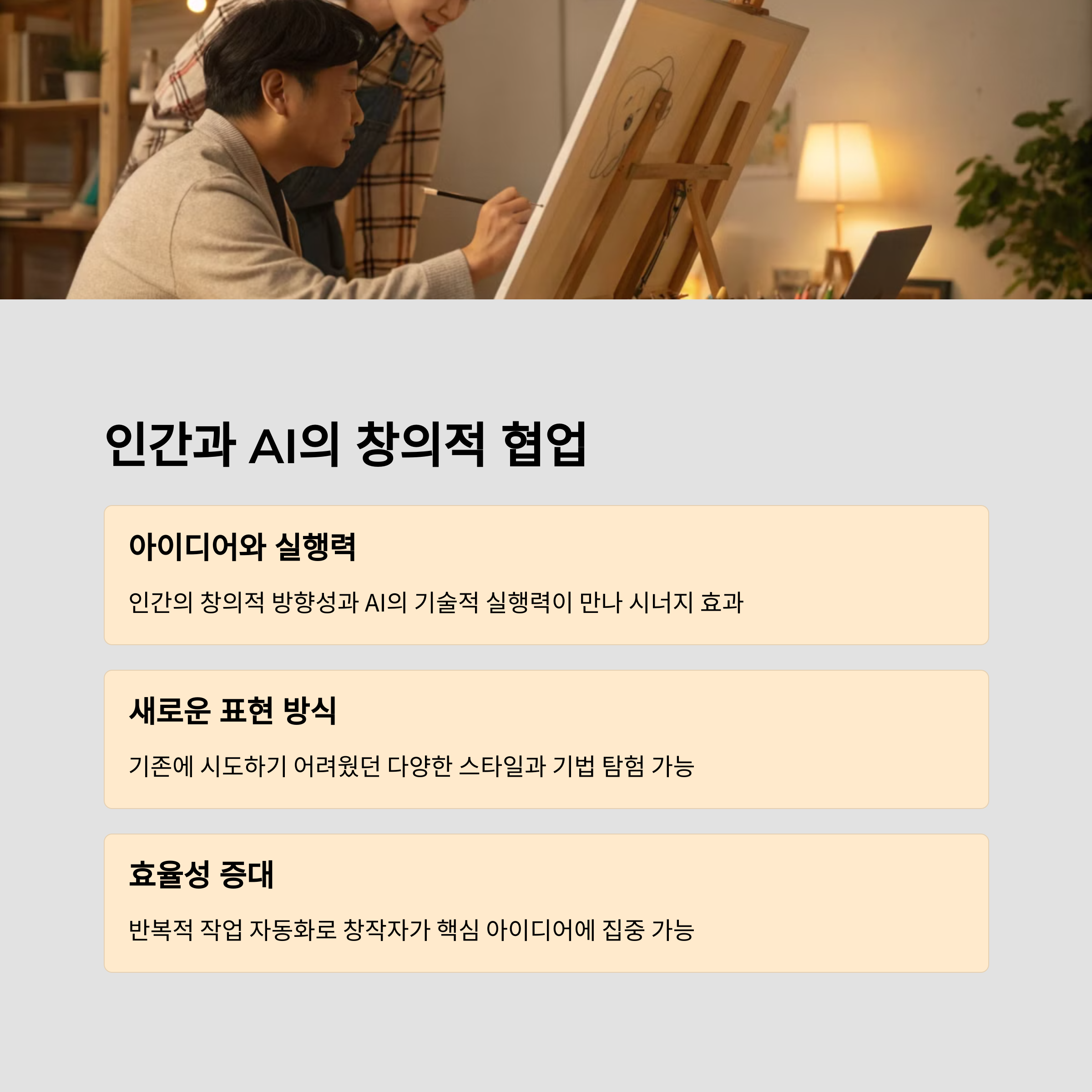 AI는 도구일 뿐, 감정과 삶을 반영하는 예술은 여전히 인간 중심입니다.