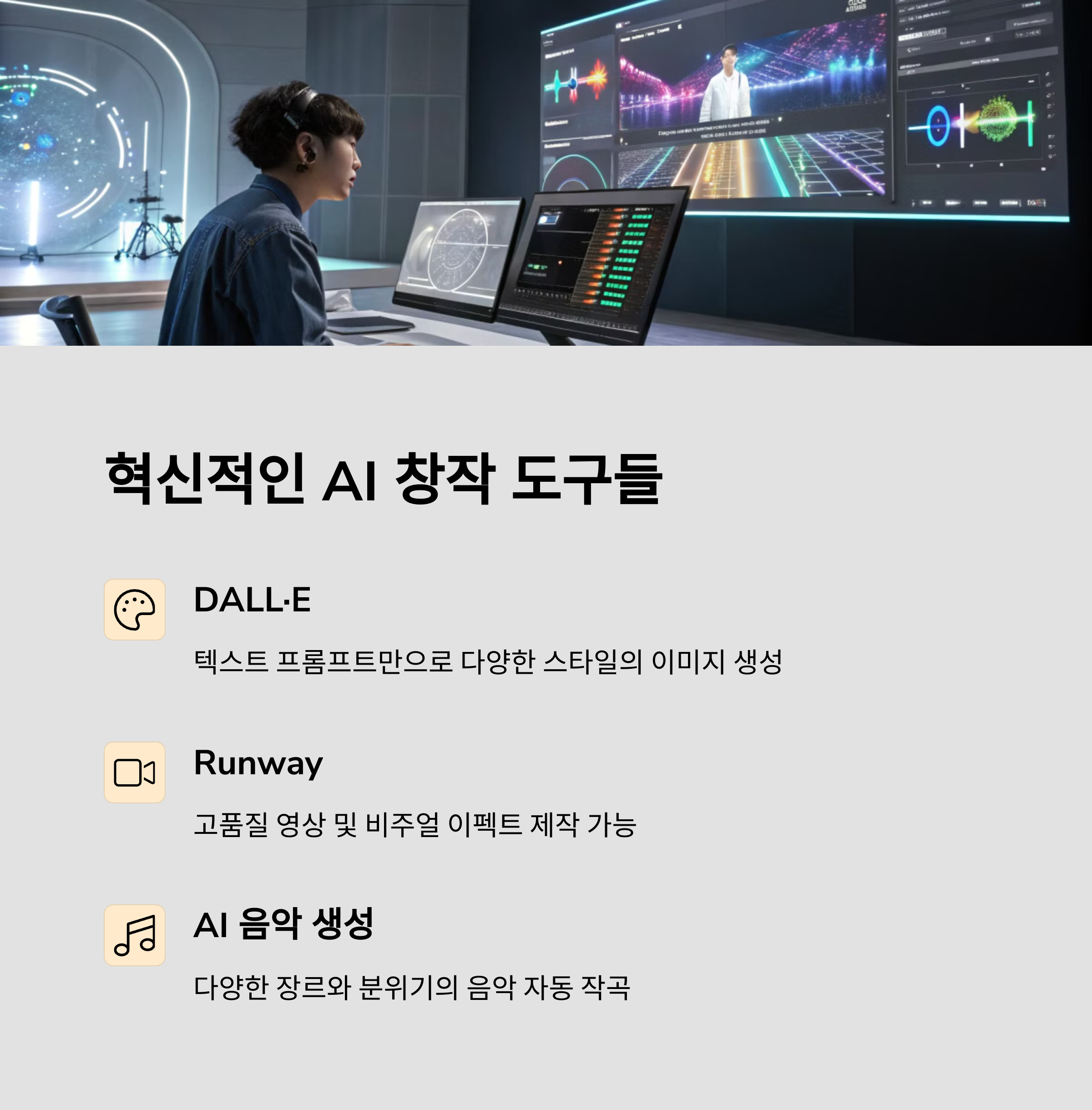 DALL·E나 Runway 같은 도구를 직접 사용해보며 감각을 익히는 것이 중요합니다.