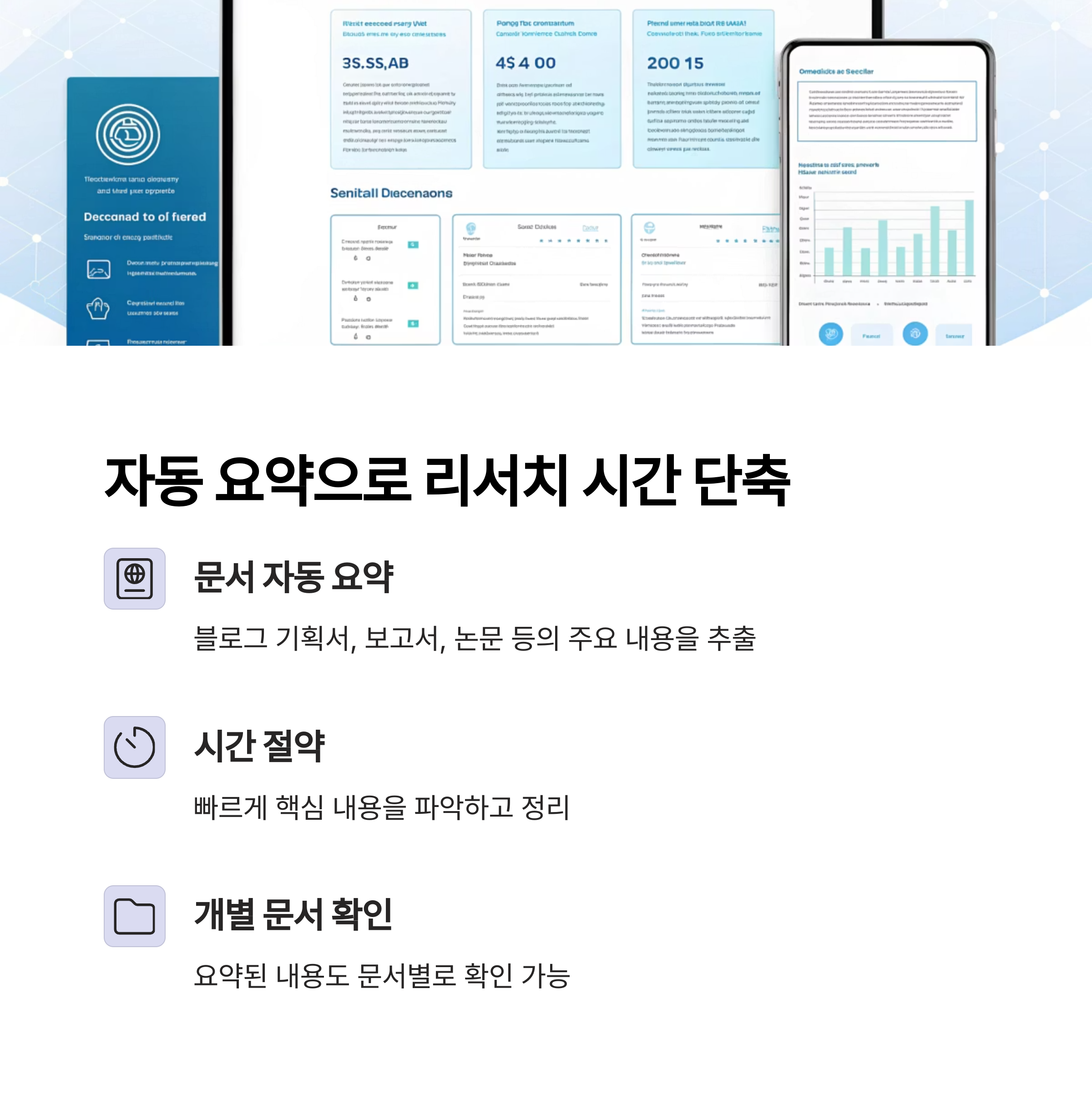 블로그 기획서, 보고서, 논문 등을 업로드하면 주요 내용을 추출하여 한눈에 정리해줍니다.